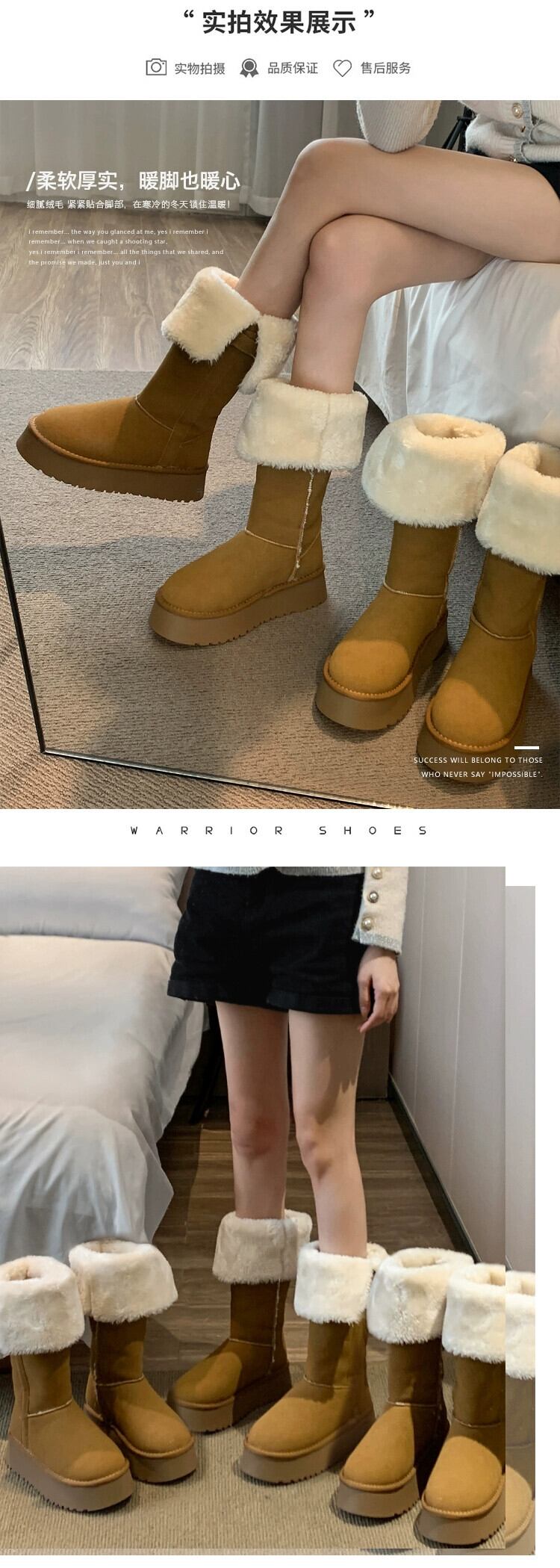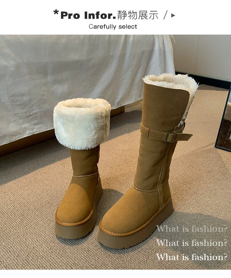 Jia Bujia 春ブーツの女性 2024 新しいスタイルプラスベルベットで暖かく、汎用性の高い小柄な人の厚底ファッショナブルなスノーブーツのトレンド 靴 シューズ スプリング 春物 jxjxf37704451657