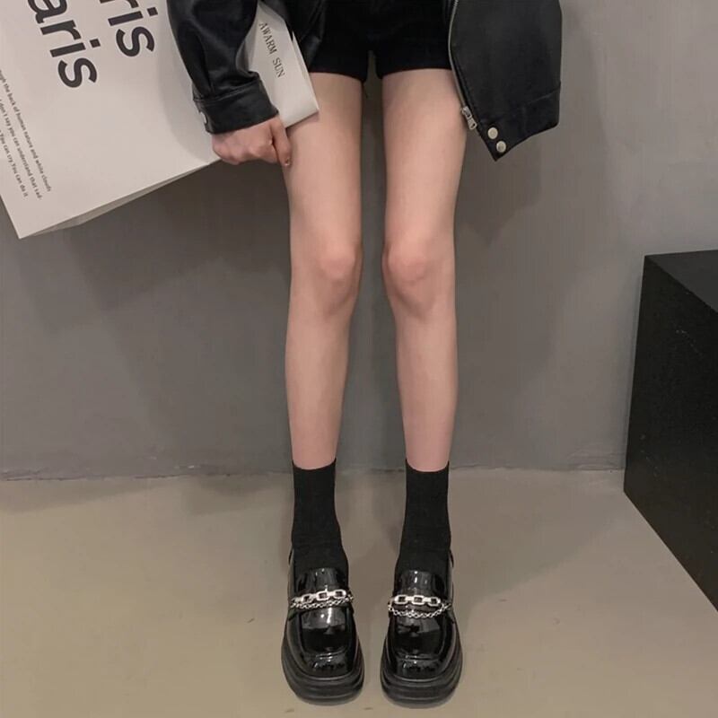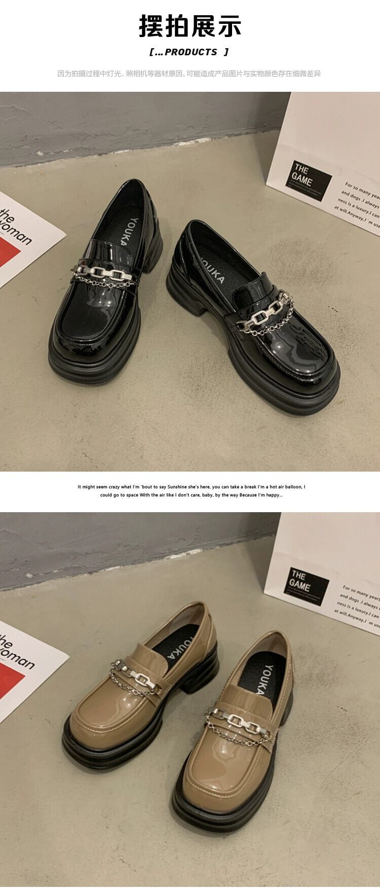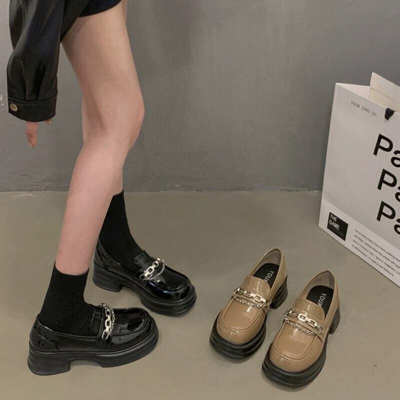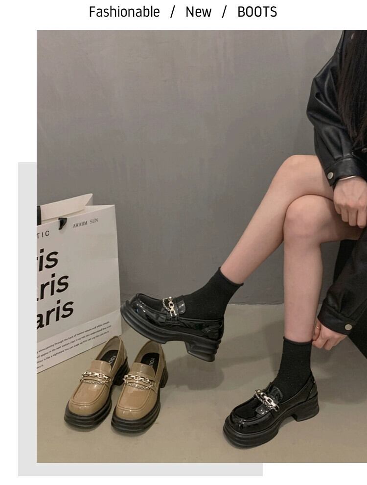 Jia Bujia 女性のローファー 2023 冬の新しい気質メタルチェーンファッショナブルな多用途厚いヒールの小さな革靴 シューズ ウィンター 冬物 レザー jxjxf36631478758