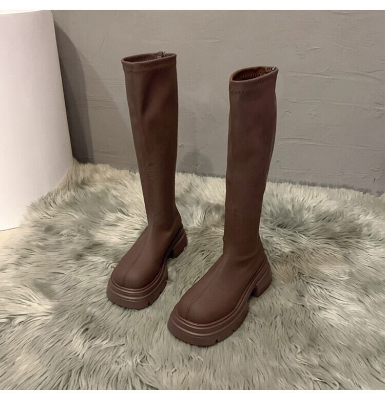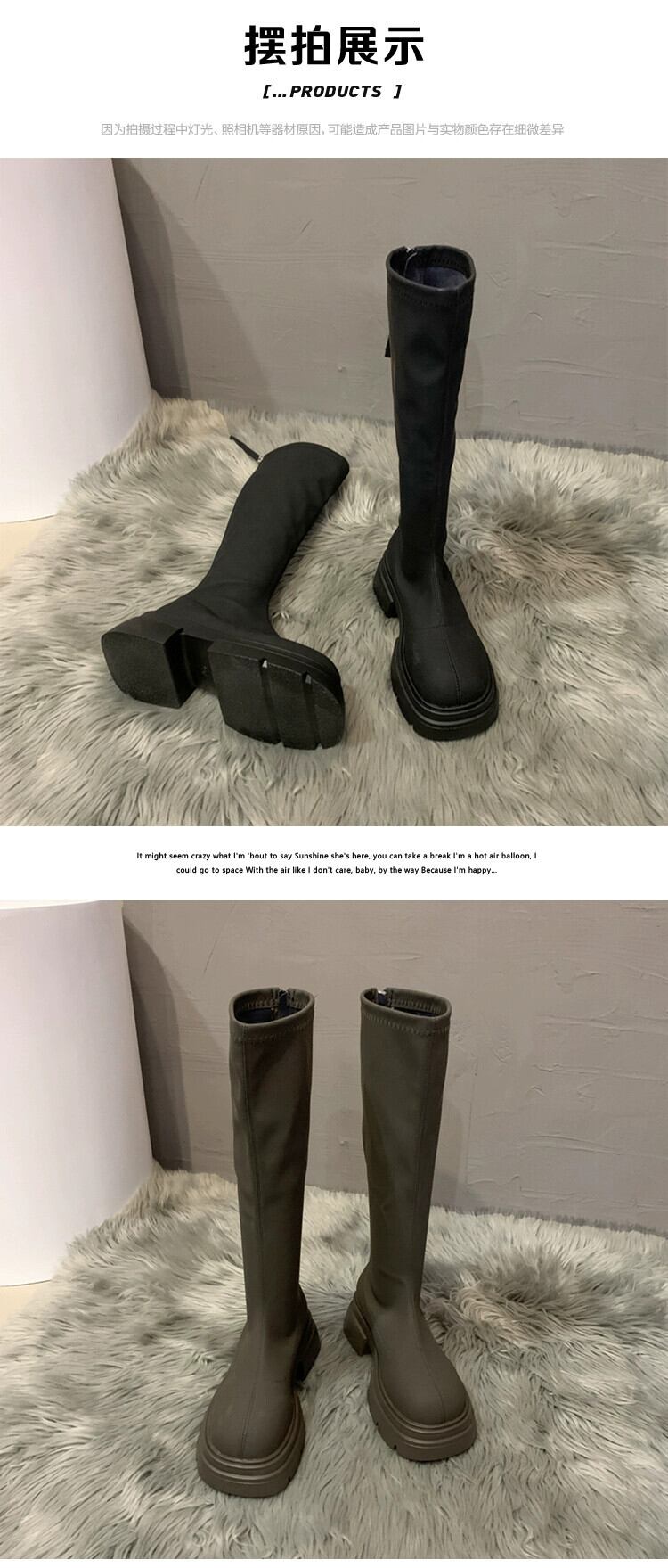 Jia Bu レトロロングブーツ女性の 2024 春多用途気質太いヒール増加スリムブーツ 靴 シューズ スプリング 春物 jxjxf97444555013
