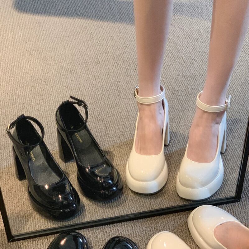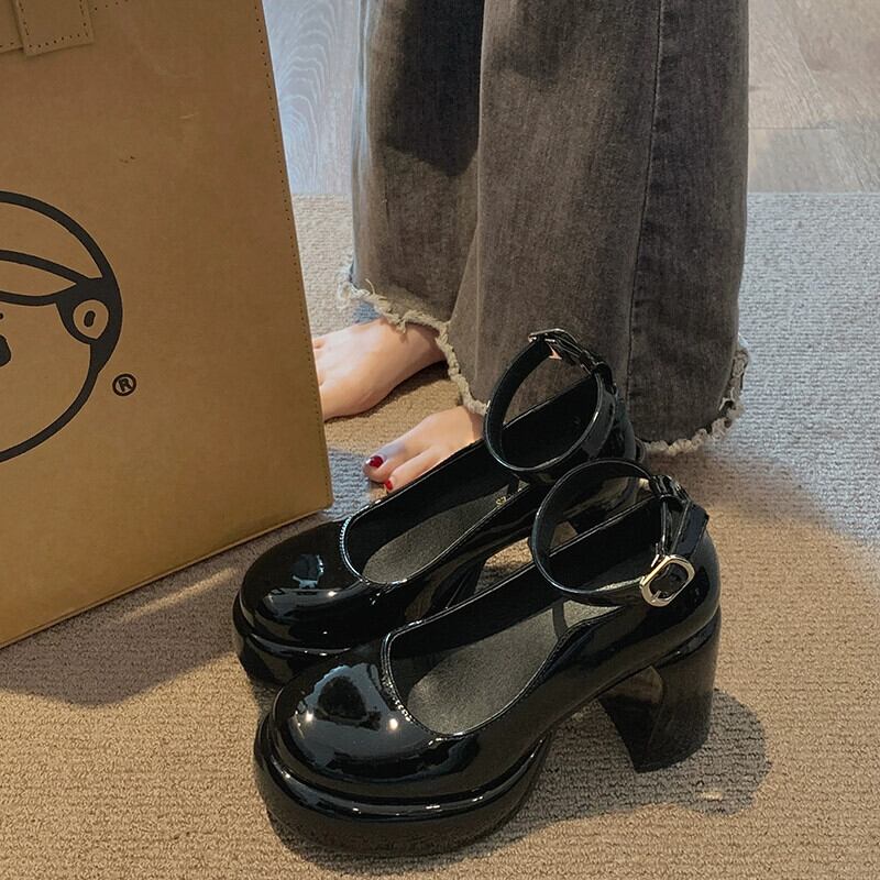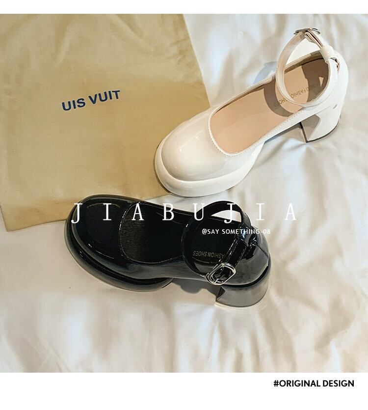 Jia Bufake メリージェーンの靴の女性の 2024 春太いヒールシングルシューズ気質小さなレトロ多用途ヒール スプリング 春物 jxjxf67232697327