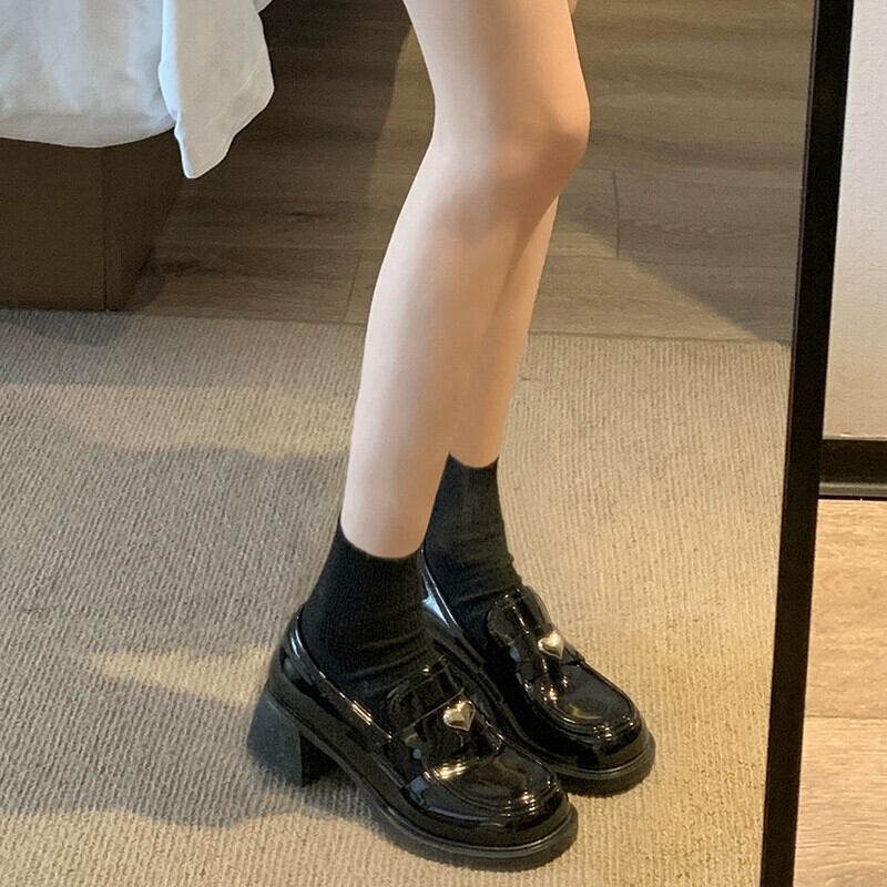 Jia Bufake ローファー女性の 2024 春と秋のシングルシューズフランスの小さな革の靴小さな太いヒールヒール スプリング 春物 オータム 秋物 レザー jxjxf32098551366