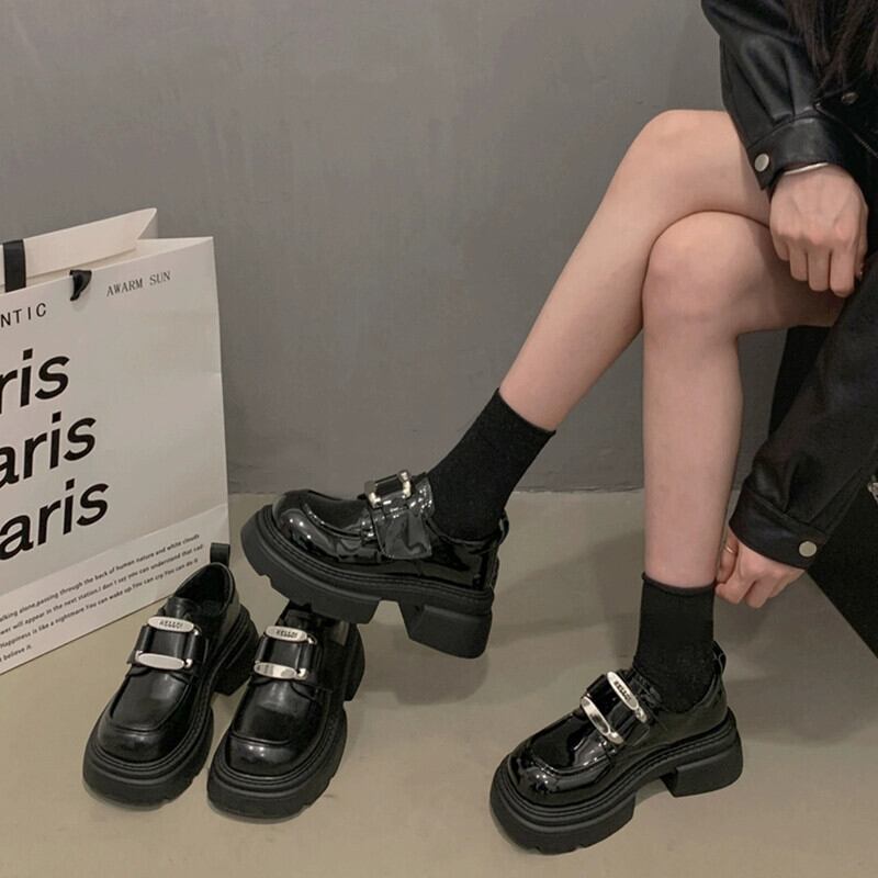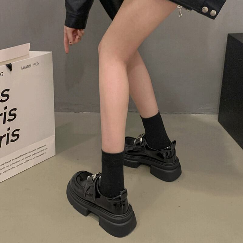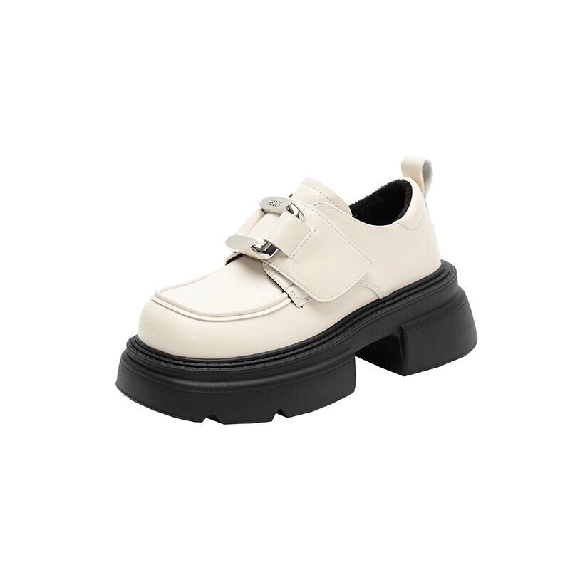 Jia Bujia レディースローファー 2023 冬の新レトロメタルファッショナブルな強化プラスベルベットの小さな靴 シューズ ウィンター 冬物 jxjxf87904767747