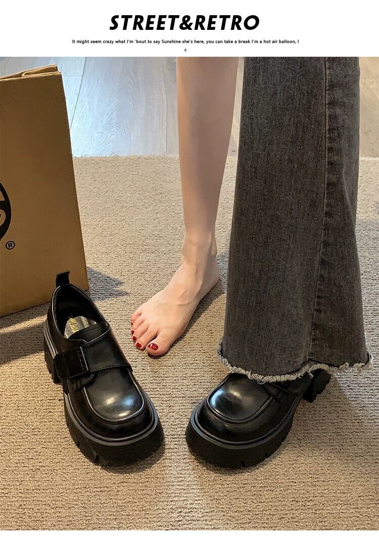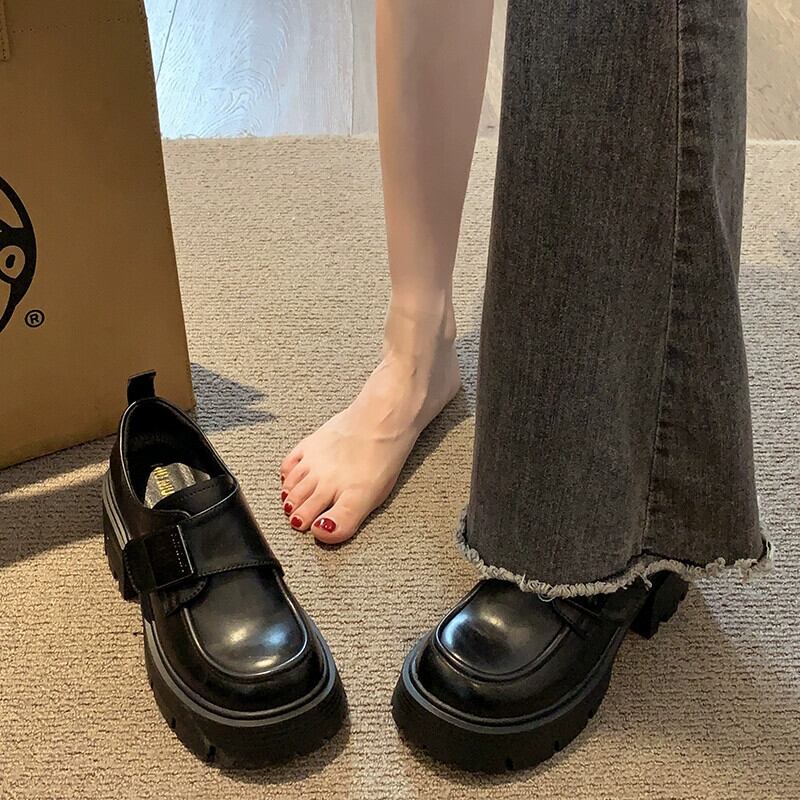 Jia Bufake 小さな革の靴の女性 2024 春の新しい気質レトロローファー黒厚底英国スタイルの靴 シューズ ブラック スプリング 春物 レザー jxjxf54268760988