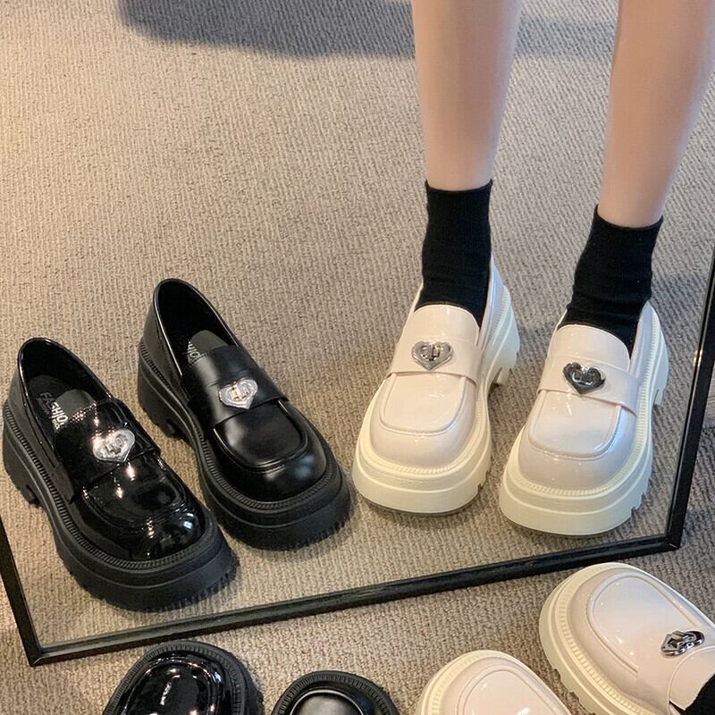 Jia Bufake ローファーの女性の 2024 春の靴レトロ多用途小さな黒の厚い底の小さな革の靴 シューズ ブラック スプリング 春物 レザー jxjxf72420062452