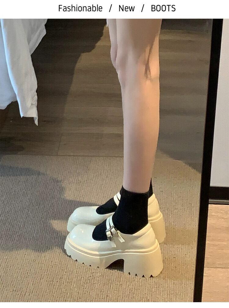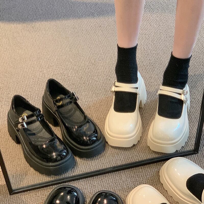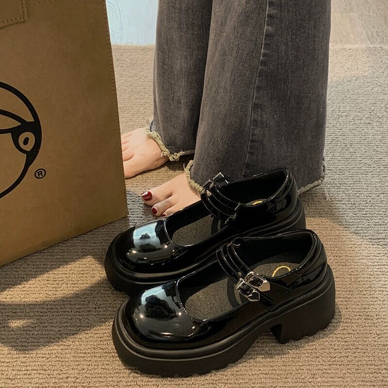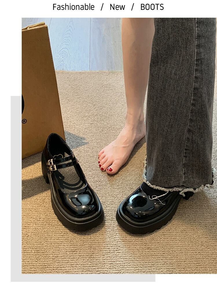Jia Bufake 小さな革の靴の女性 2024 春の新スタイルレトロ多用途小さな厚いヒールメリージェーンの靴 シューズ スプリング 春物 レザー jxjxf76171639475