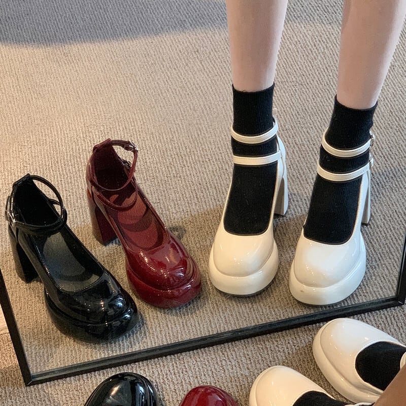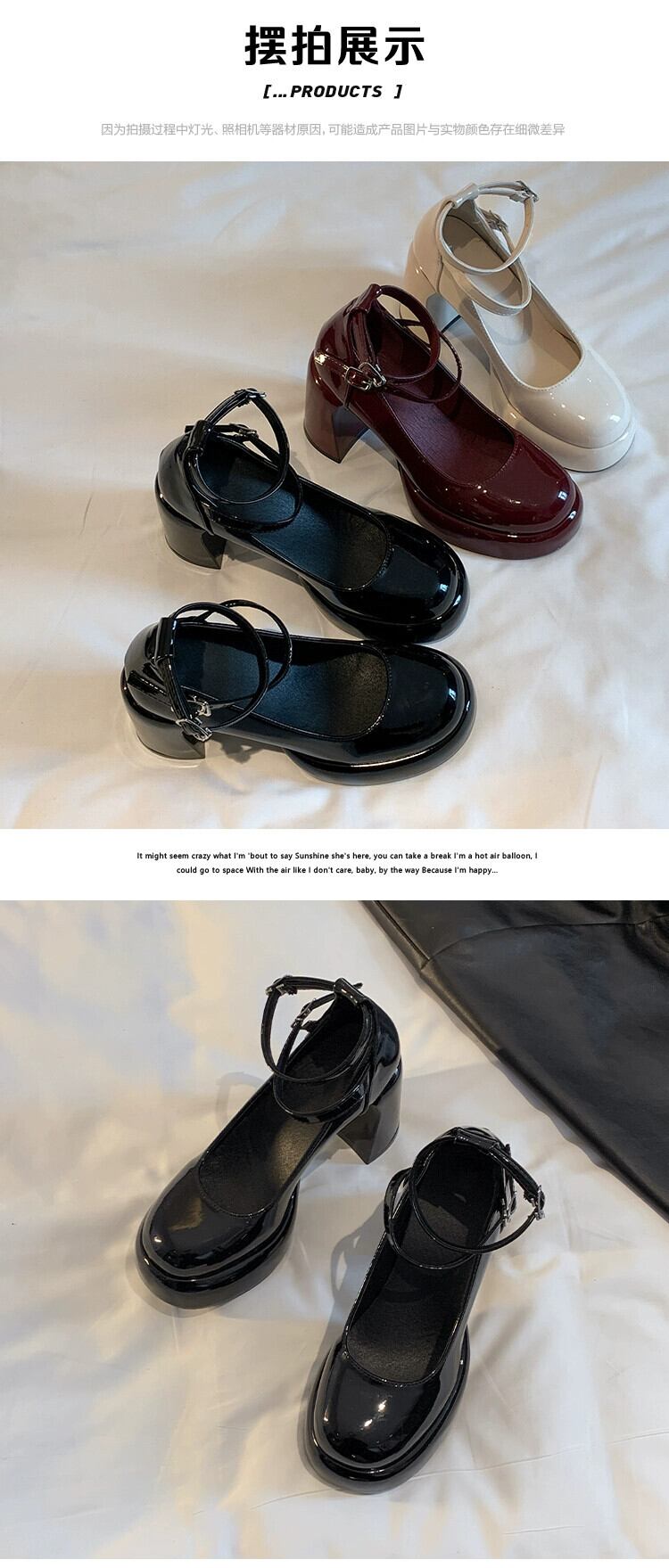 Jia Bufake メリージェーンの靴の女性の 2024 春の靴小さなスタイル太いヒール気質ヒール小さな革の靴 シューズ スプリング 春物 レザー jxjxf45452134222
