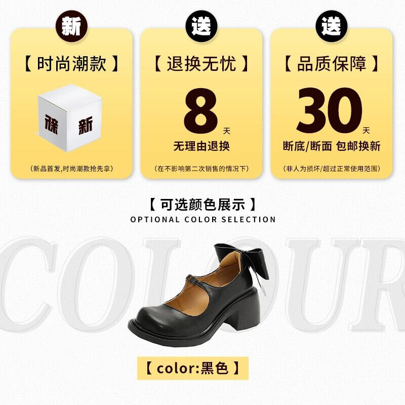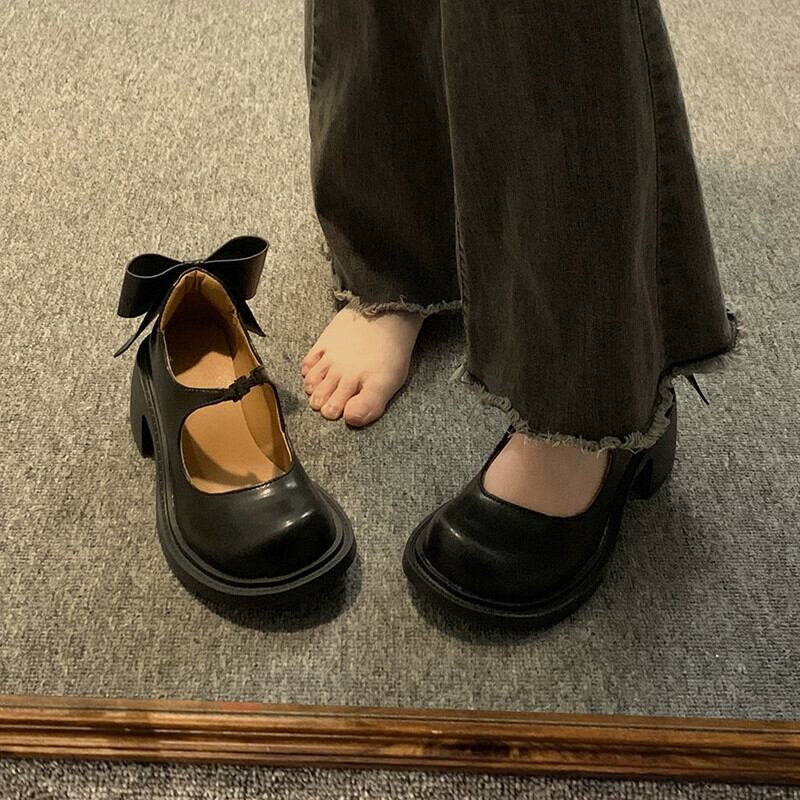Jiabu ホリデーシューズ レディース 2024 春 レトロ 多用途 甘いリボン 太いヒール メリージェーンシューズ 靴 大人ガーリー スウィート キュート カジュアル スプリング 春物 jxjxf67332364988