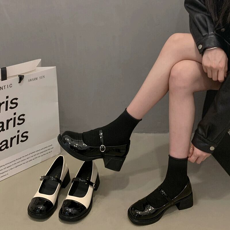 Jia Bufake メリージェーンの靴の女性の 2024 春と秋の気質フランスのレトロな小さな浅い口厚いヒールのシングルシューズ スプリング 春物 オータム 秋物 jxjxf40955830100