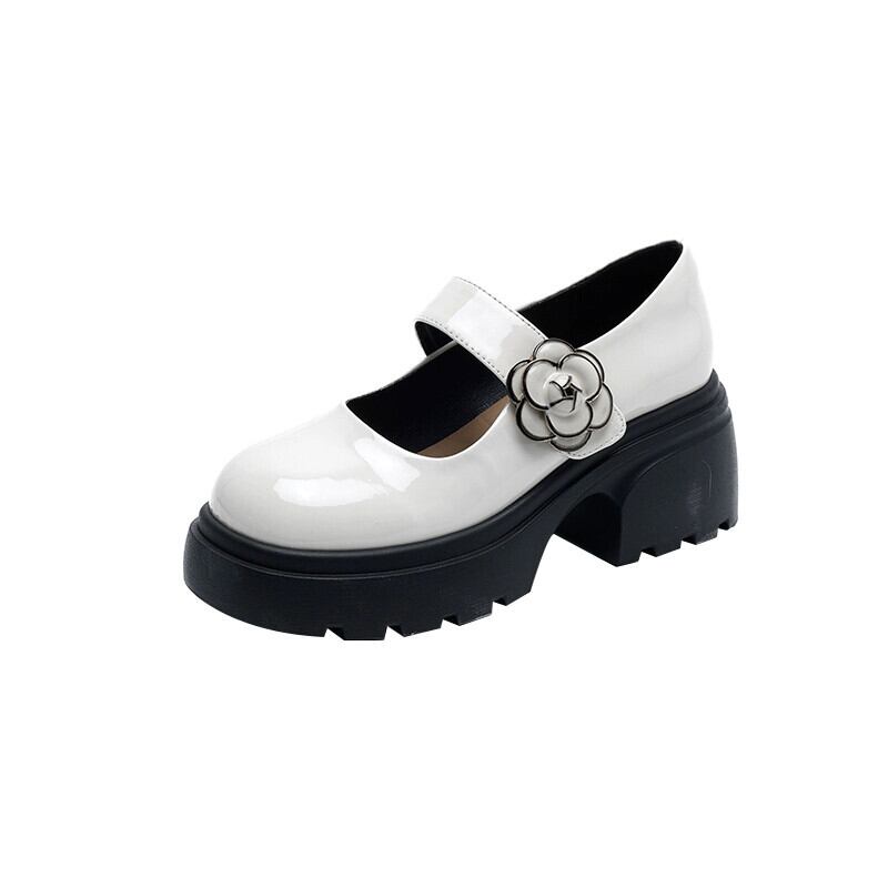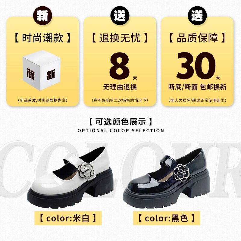 Jia Bufake 小さな革の靴の女性 2024 春と秋の新スタイルのシングルシューズフレンチレトロファッション浅い厚いヒールメリージェーンの靴 スプリング 春物 オータム 秋物 レザー jxjxf88792329527