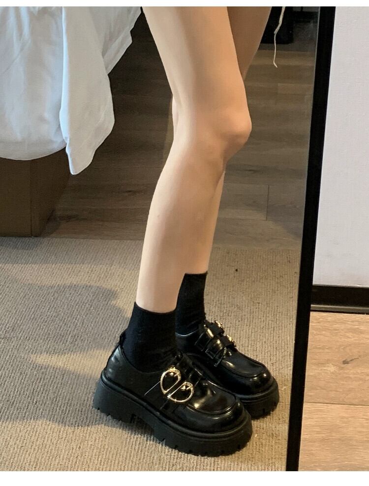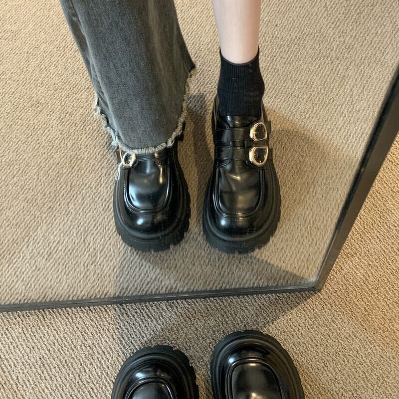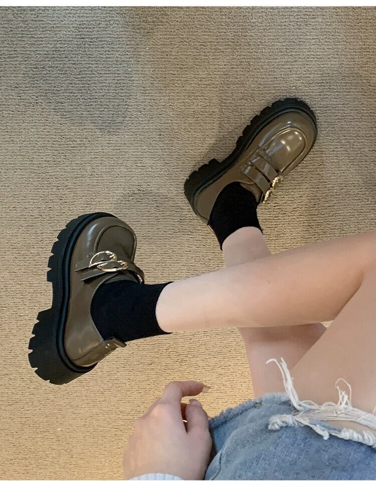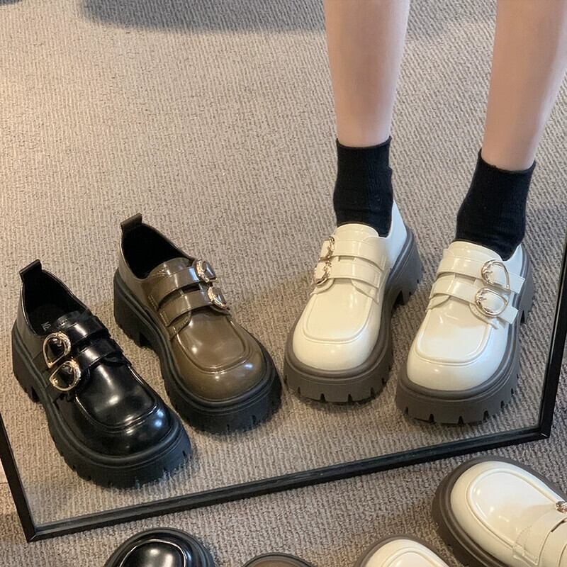 Jia Bufake ローファーレディース 2024 春スタイルレトロオールマッチ小型厚底靴スカート付き小さな革靴 シューズ スプリング 春物 レザー jxjxf6034931235