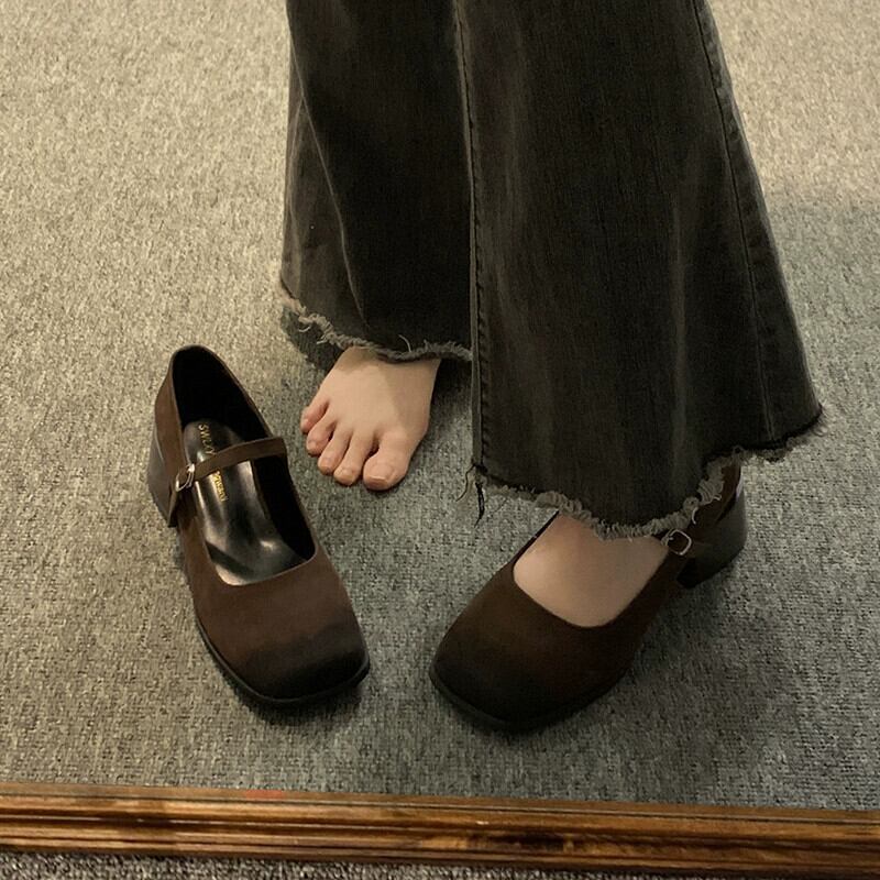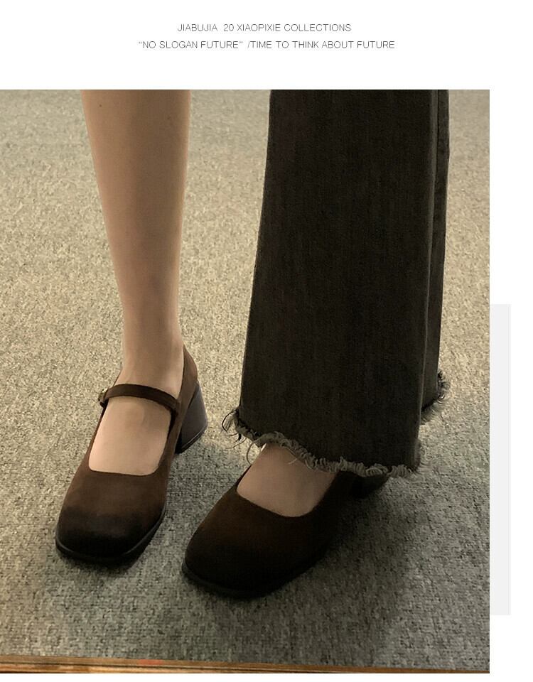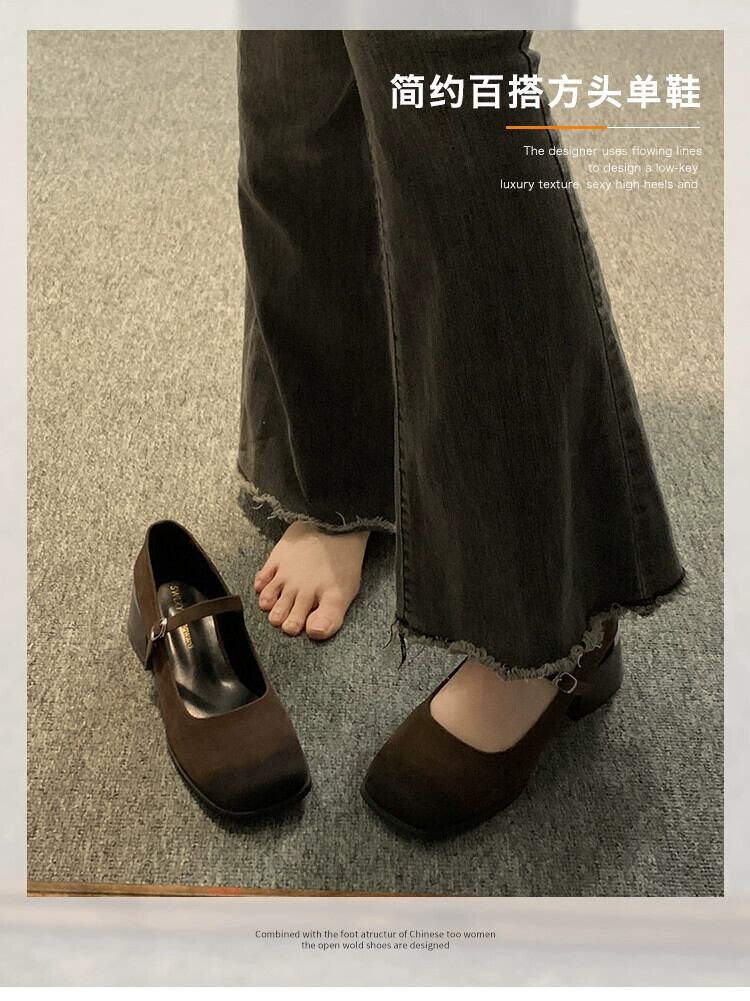 Jia Bujia スクエアトゥシングルシューズ女性の 2024 春レトロ多用途小中ヒール浅い口メリージェーンの靴 スプリング 春物 スクウェア jxjxf52313562358
