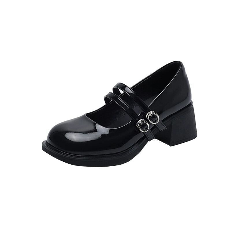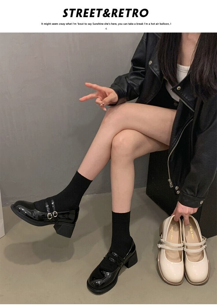Jia Bufake メリージェーンの靴の女性の 2024 春レトロ多用途小さなヒールスタイル浅い口の小さな革の靴 シューズ スプリング 春物 レザー jxjxf50887695029