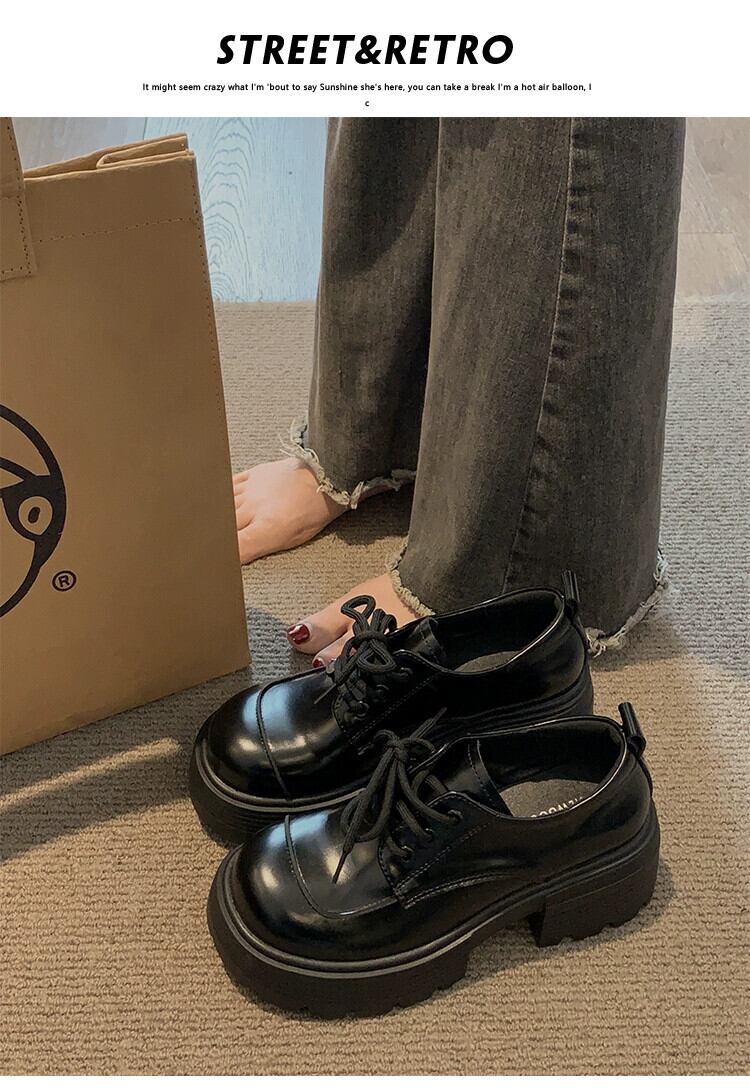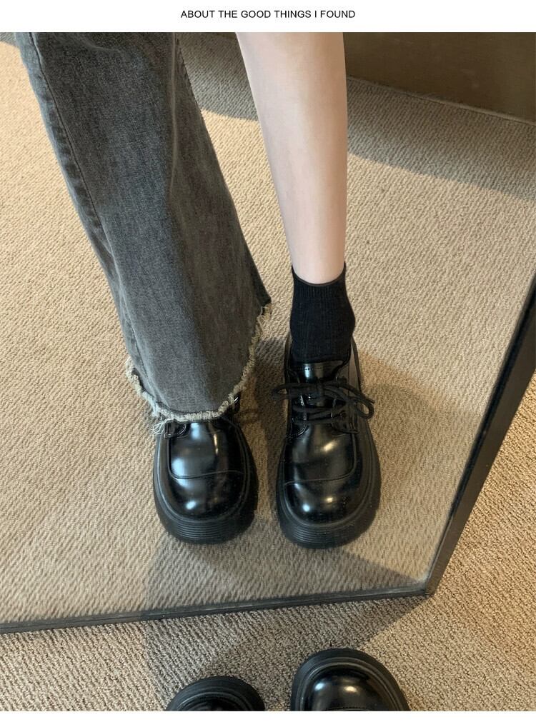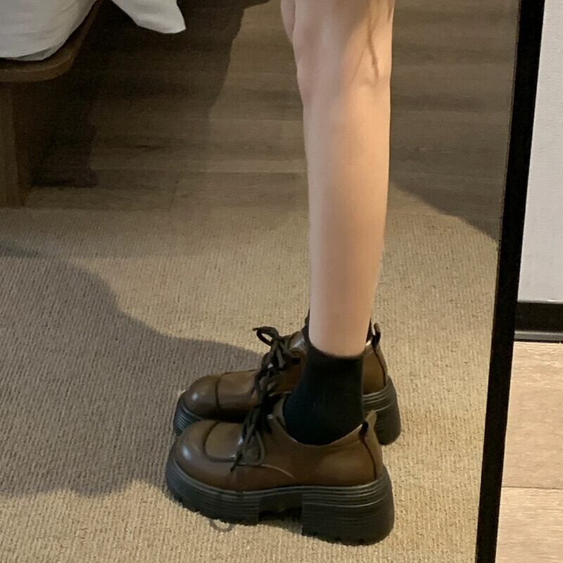 Jia Bujia 超人気シングルシューズ女性 2024 春の新レトロファッション多用途小型厚いヒールカジュアル小さな革靴 スプリング 春物 レザー jxjxf94067270842