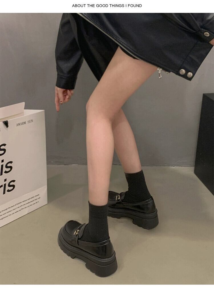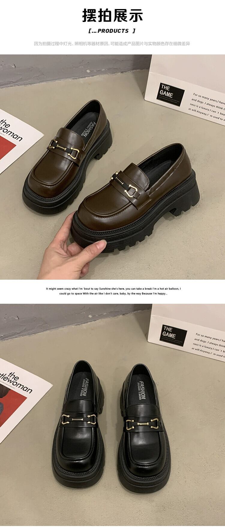 Jia Bufake ローファーレディース 2024 春多用途フレンチスモールブリティッシュスタイルブラック厚底スモールレザーシューズ 靴 スプリング 春物 jxjxf48249378600