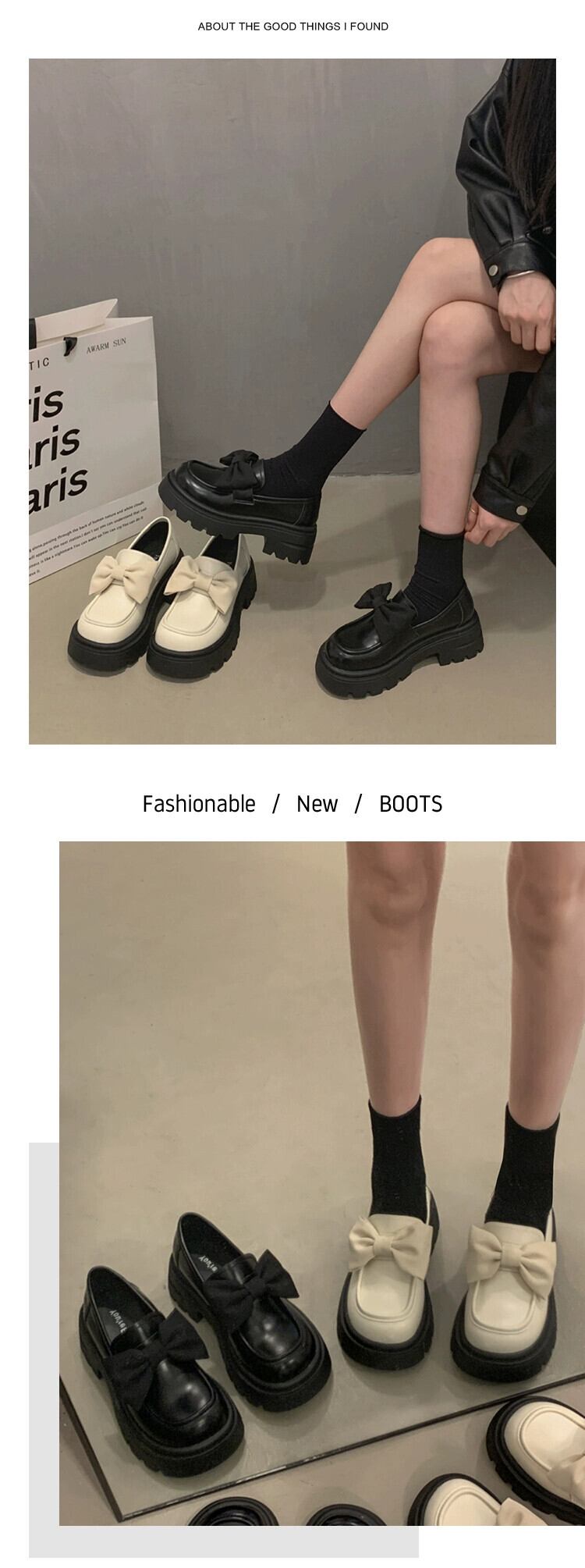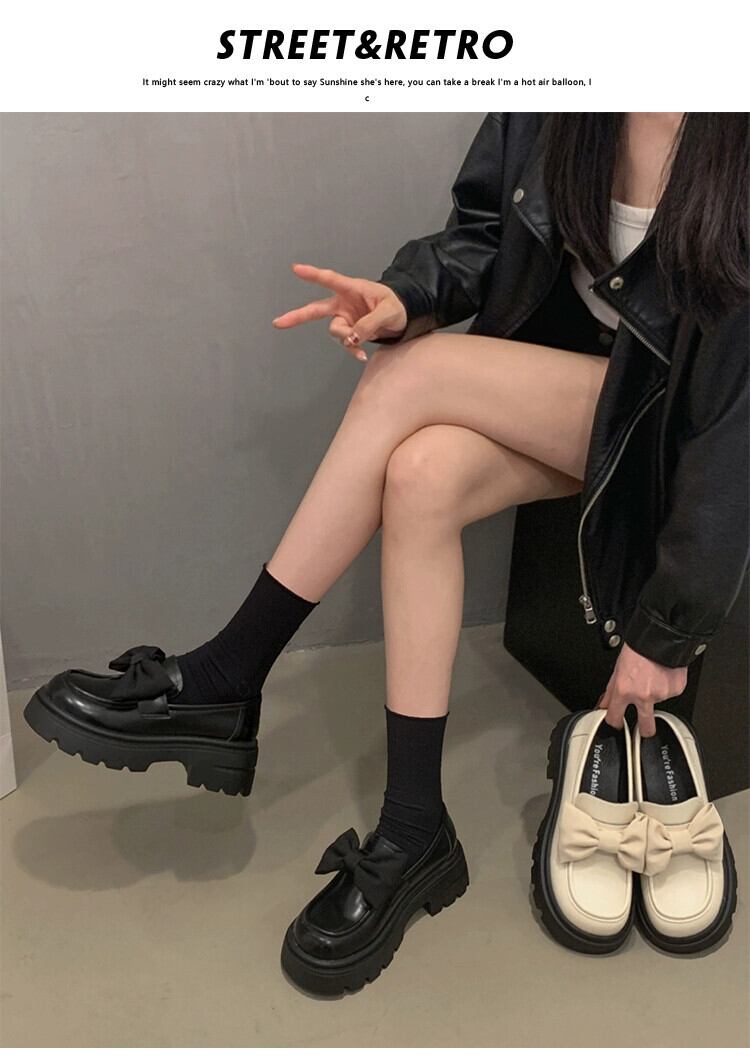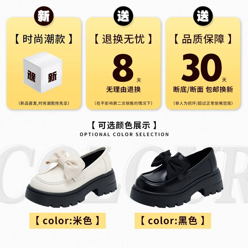 Jia Bujia ローファー女性の 2024 春と秋のスタイルのフランスの穏やかで多用途の黒の厚底英国スタイルの小さな革靴 シューズ ブラック スプリング 春物 オータム 秋物 レザー jxjxf75832313867