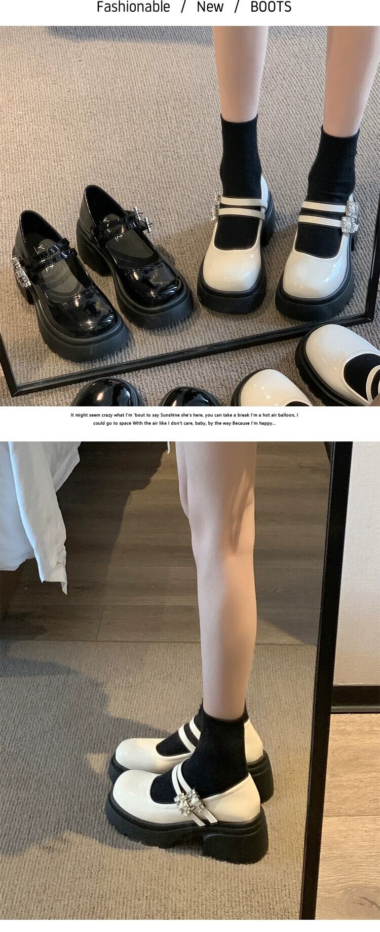 Jia Bufake メリージェーンの靴の女性の 2024 春と秋のインターネット有名人の靴レトロ太いヒール浅い口の小さな革の靴 シューズ スプリング 春物 オータム 秋物 レザー jxjxf30770092700