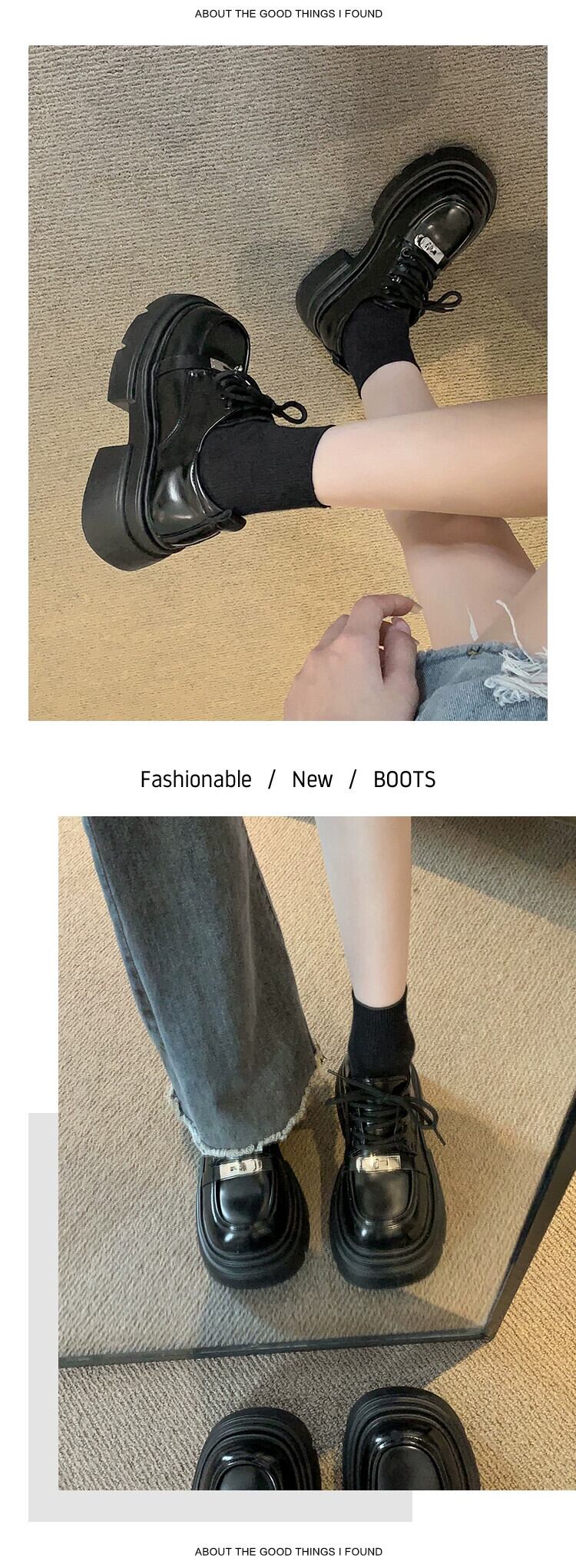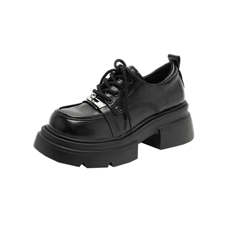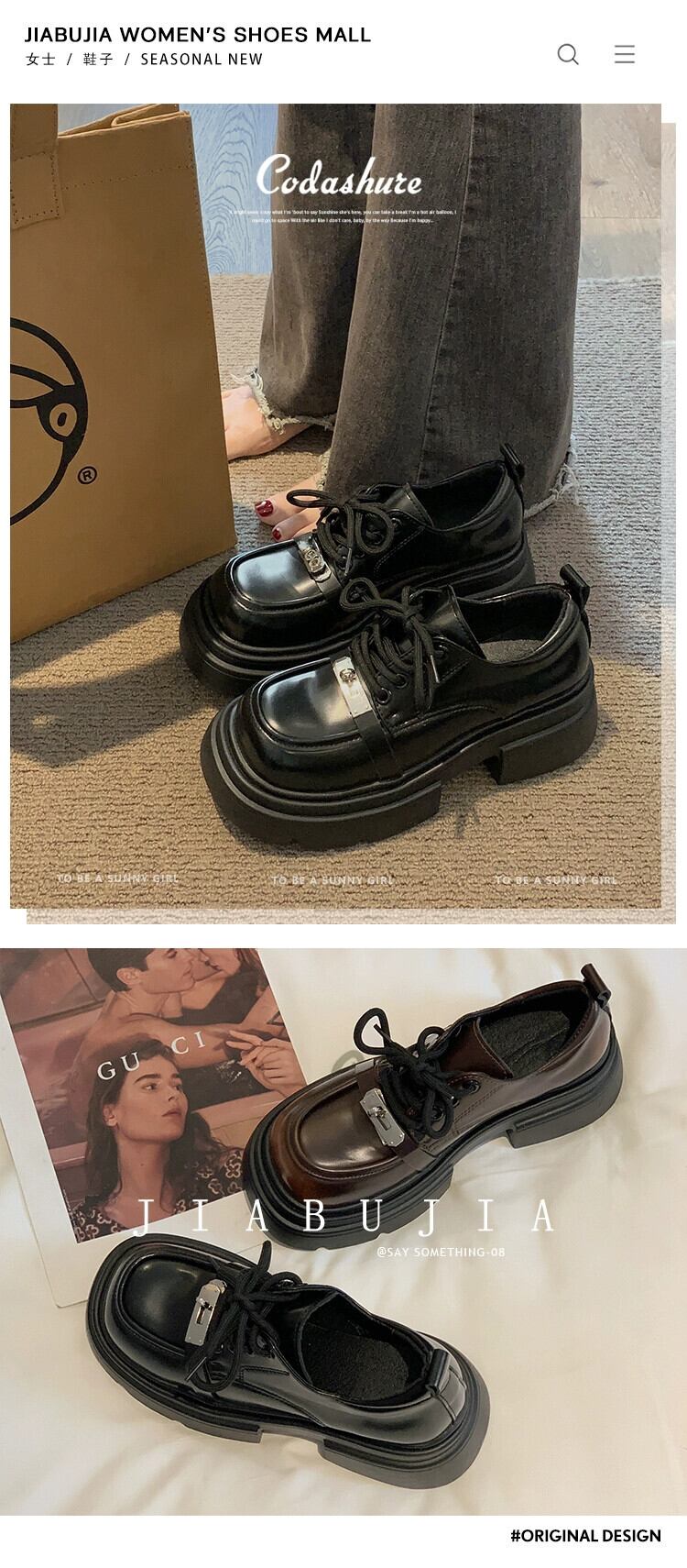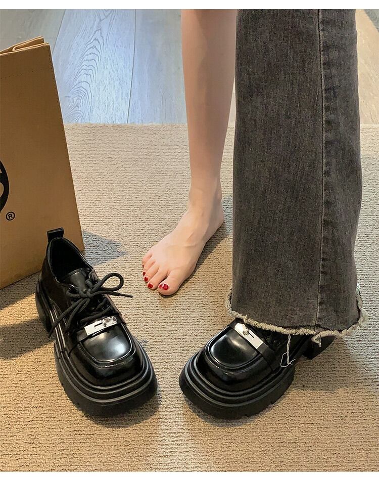 Jia Bufake 厚底革靴の女性 2024 春の新レトロ英国スタイル多用途金属気質ノンスリップ靴 シューズ メタリック スプリング 春物 レザー jxjxf54346826937