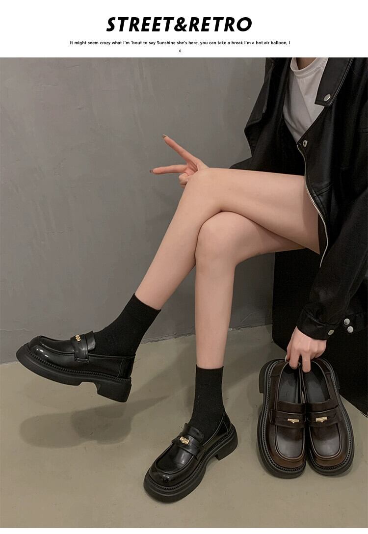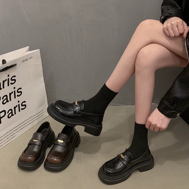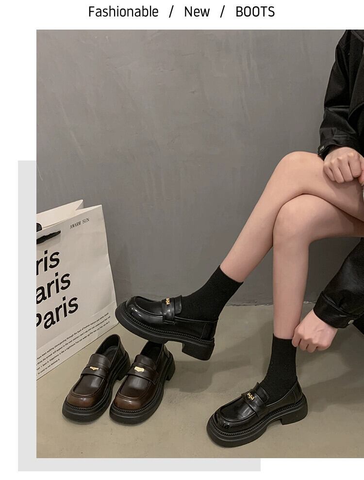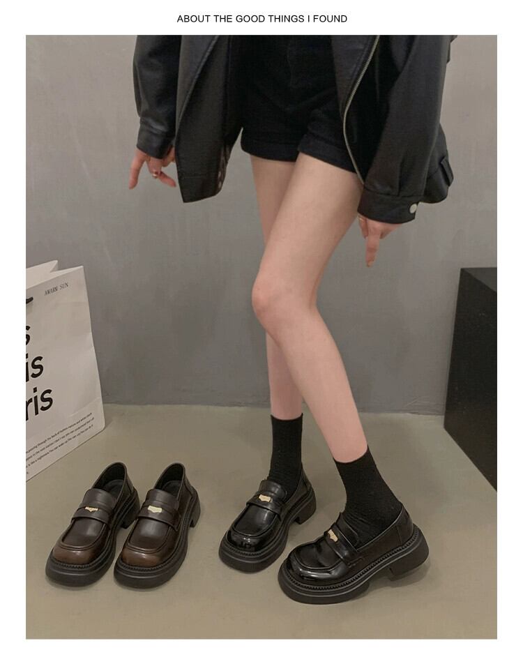 Jia Bufake 厚底小さな革靴の女性 2024 春の新ソフトソール多用途黒レトロ英国スタイルのローファー シューズ ブラック スプリング 春物 レザー jxjxf18998404404