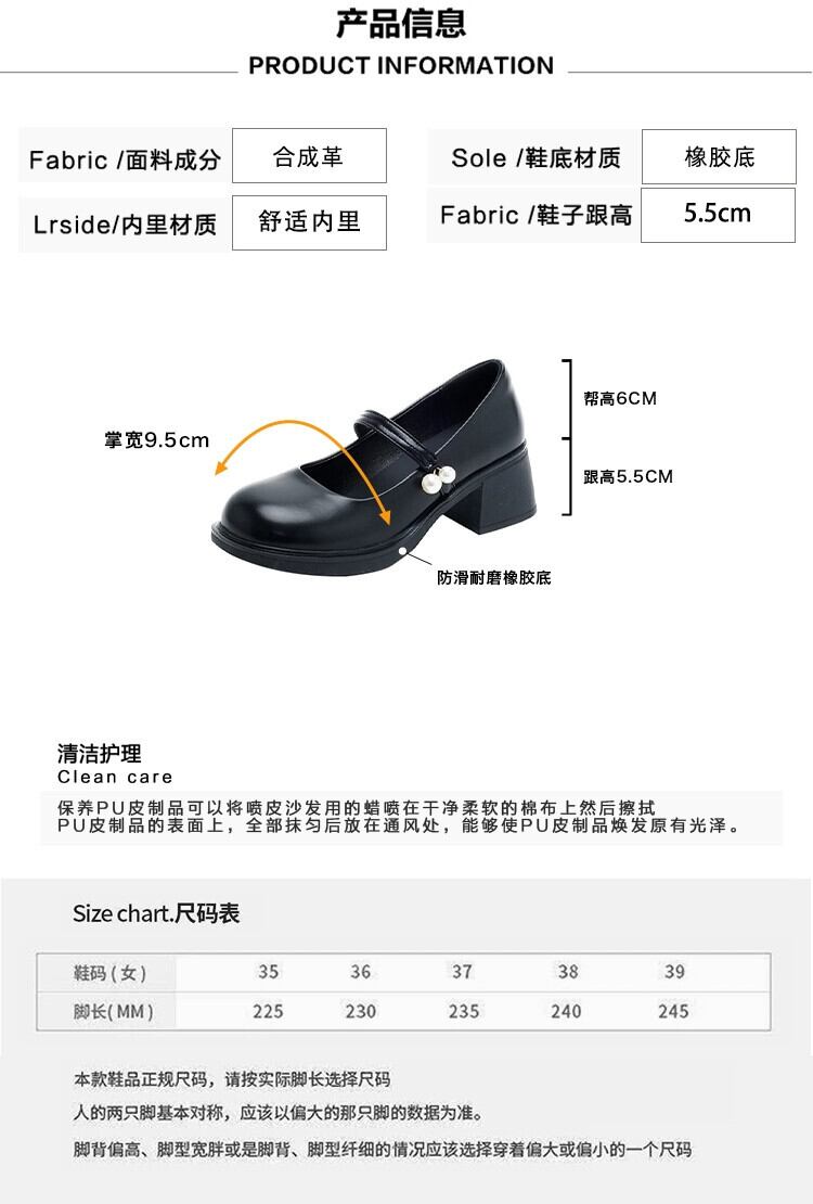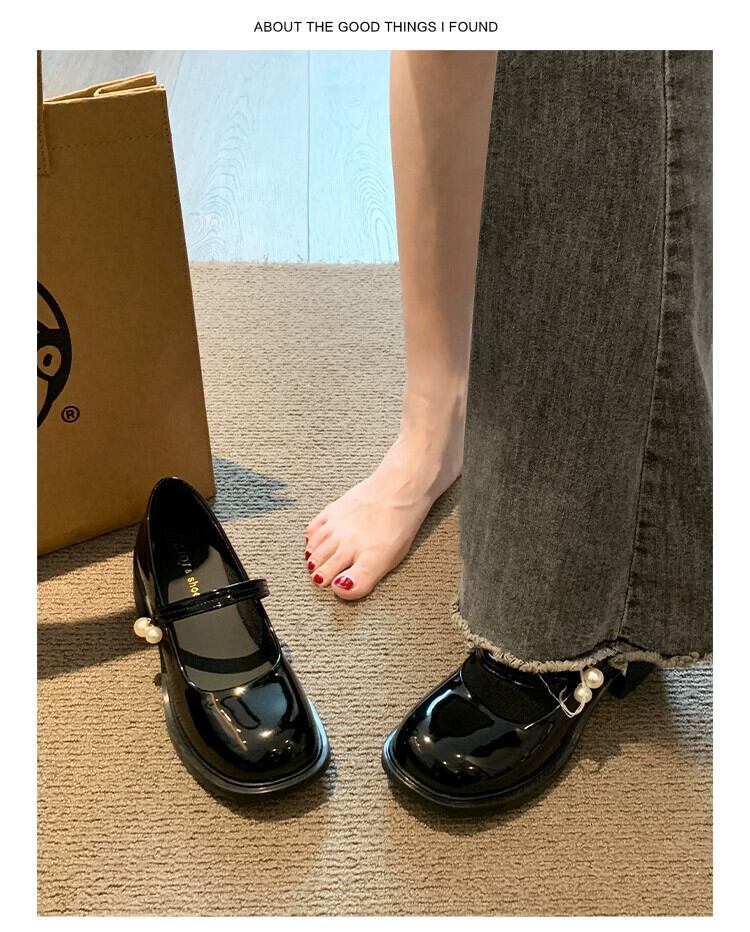 Jia Bufake メリージェーンシューズ レディース 2024 春秋スタイル レトロパール太いヒール スカートシューズ 靴 スプリング 春物 オータム 秋物 真珠 jxjxf82230630828