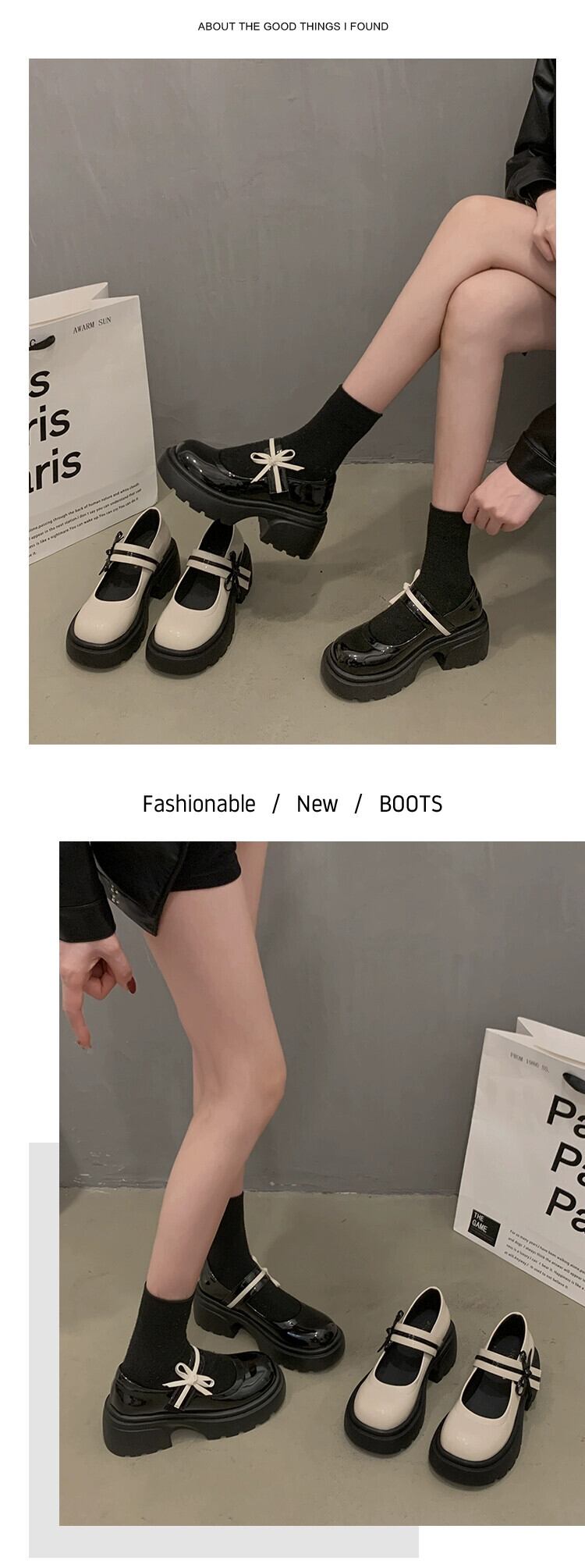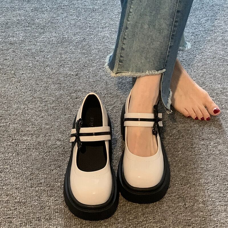 Jia Bujia メリージェーンの靴の女性 2024 春と秋の新スタイルスカート付きフレンチスタイルファッショナブルな太いヒールの小さな革靴 シューズ スプリング 春物 オータム 秋物 レザー jxjxf79126072704