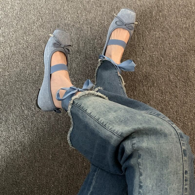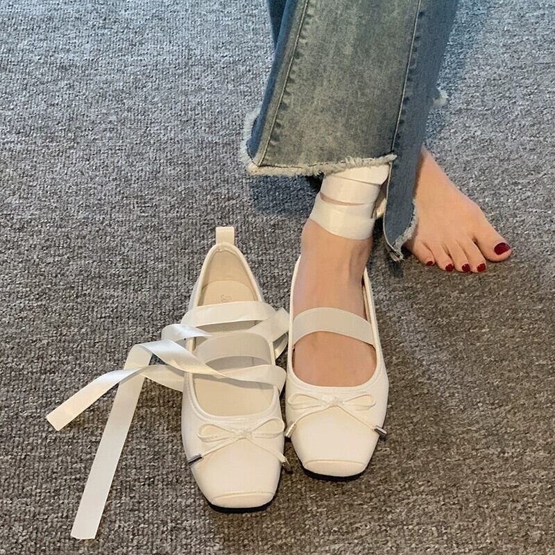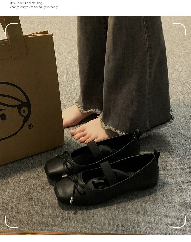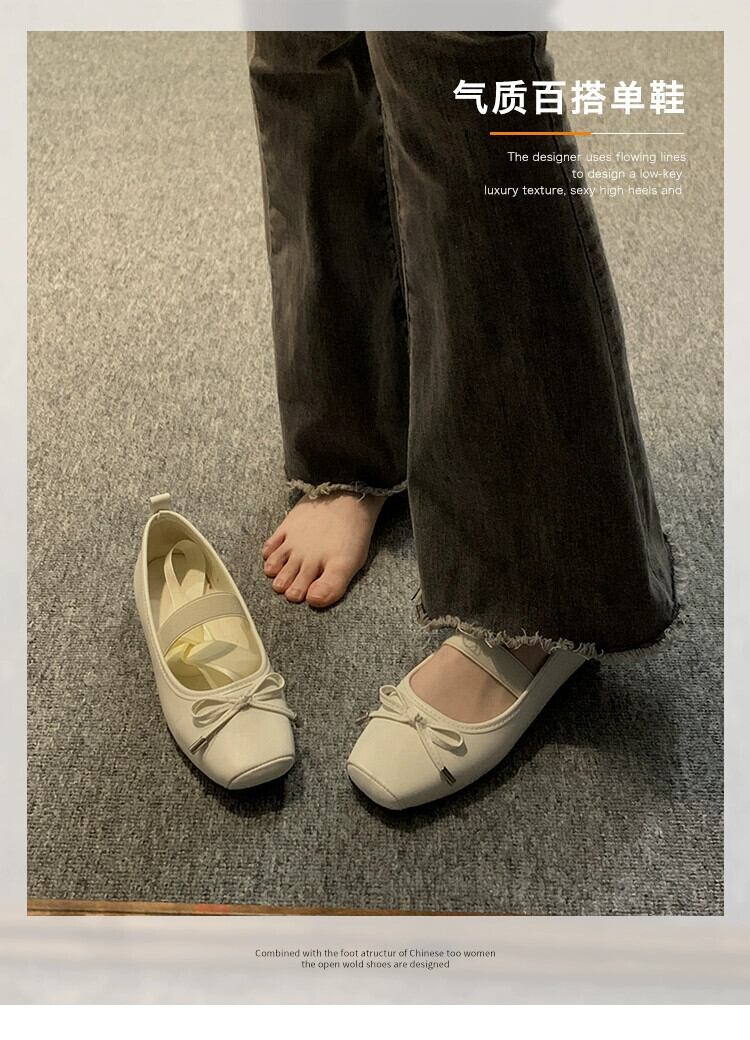 Jia Bujia インターネット有名人のシングルシューズの女性 2024 春の新スタイル優しい気質の弓フレンチフラットバレエシューズ 靴 リボン スプリング 春物 jxjxf14678854127