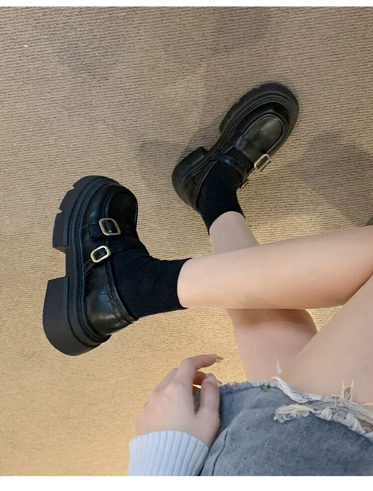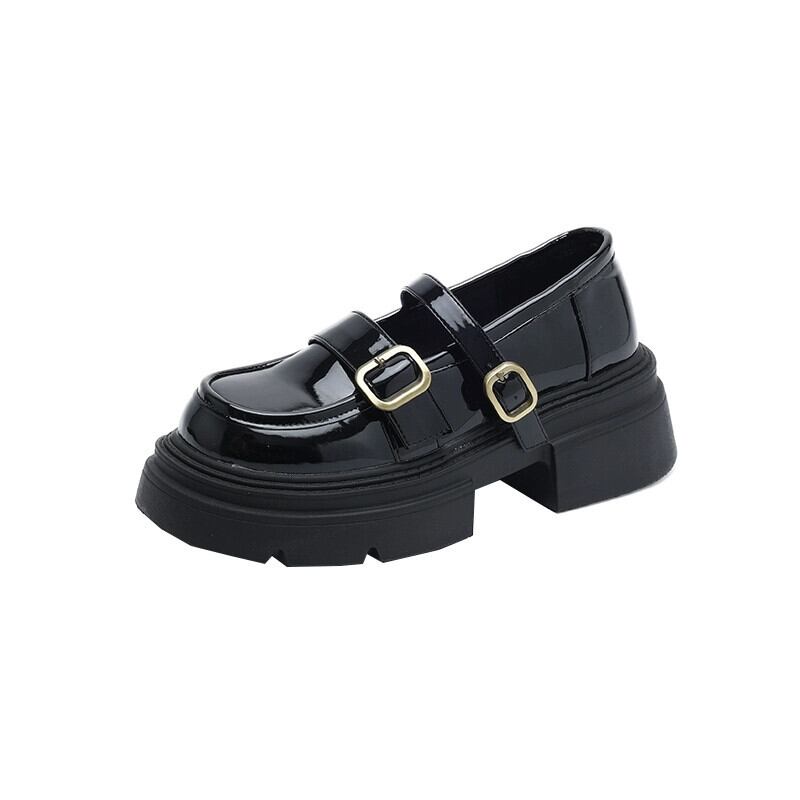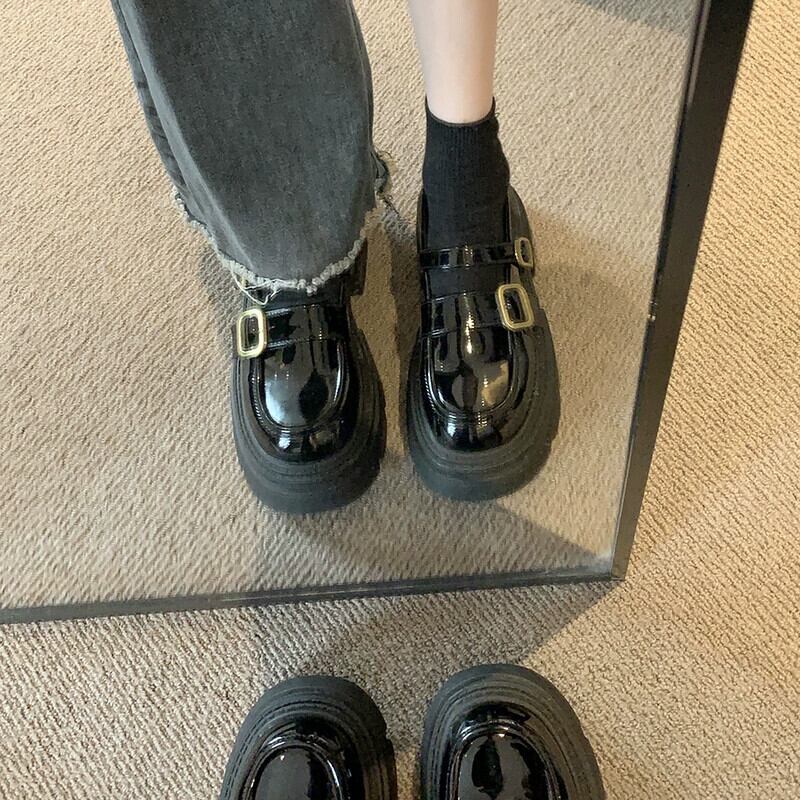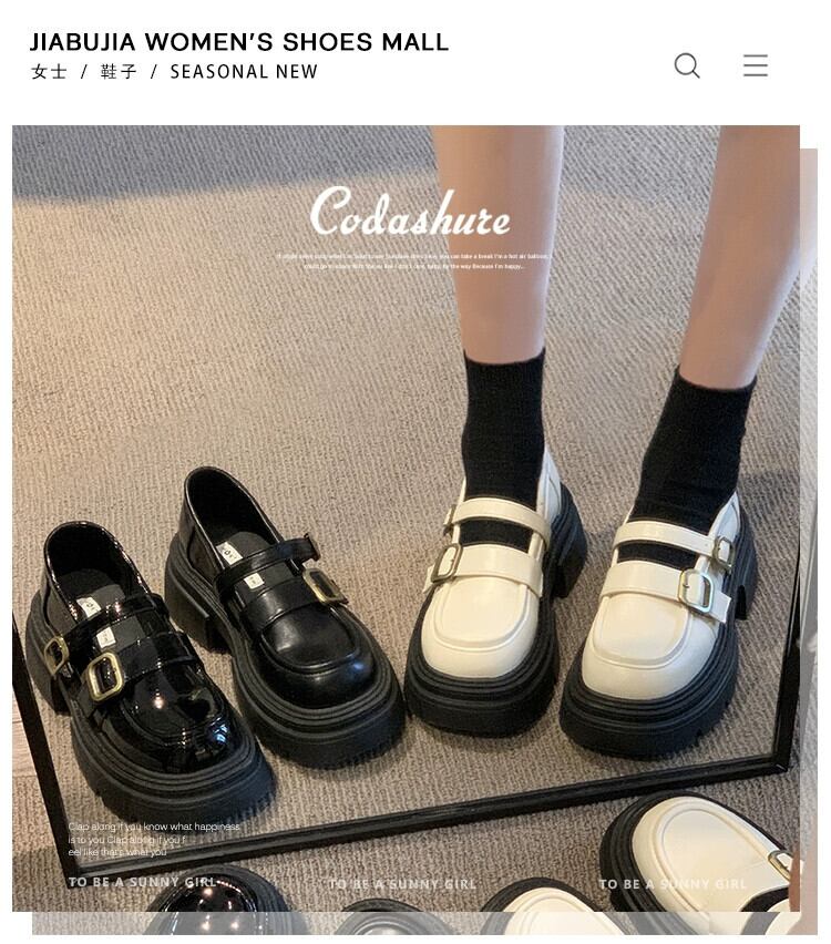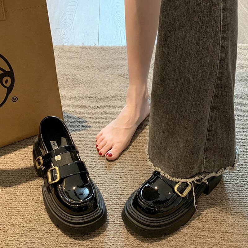 Jia Bufake ローファーの女性の 2024 春と秋の靴黒の厚底シングルシューズレトロ英国スタイルの小さな革靴 ブラック スプリング 春物 オータム 秋物 レザー jxjxf85284361177