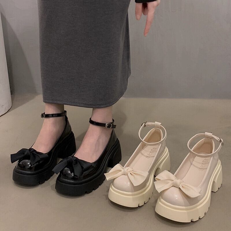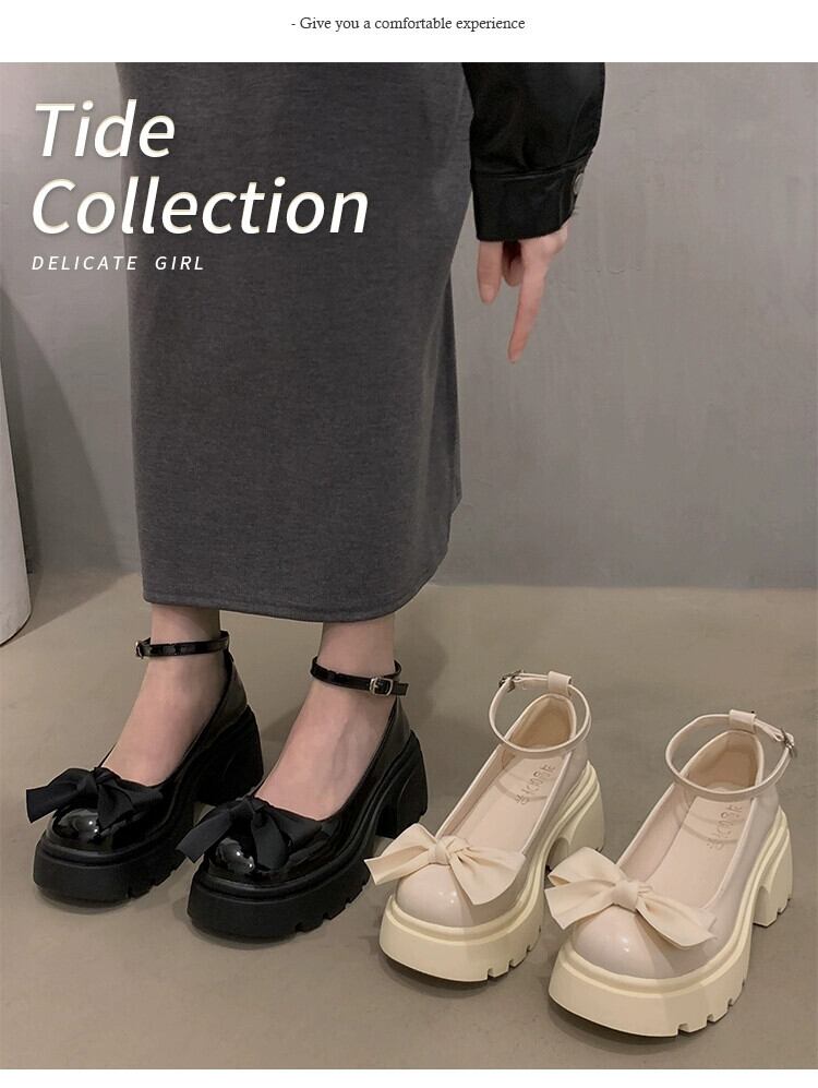 Jia Bu ホリデーシューズ レディース 2024 春 スウィートリボン 厚底マッチングスカート メリージェーンシューズ 靴 大人ガーリー キュート カジュアル スプリング 春物 jxjxf92086907606