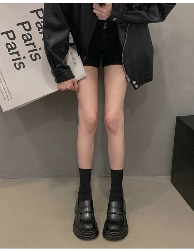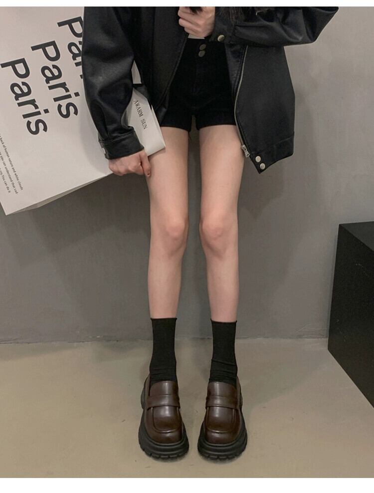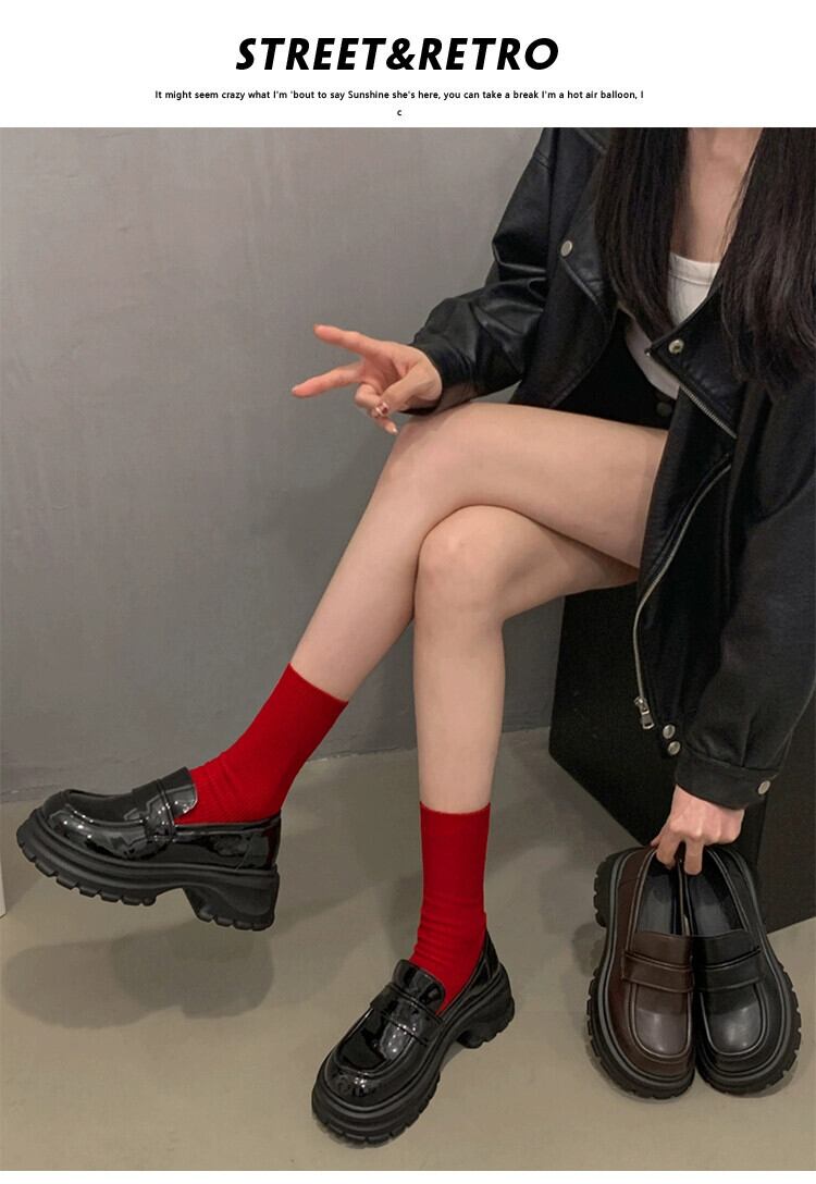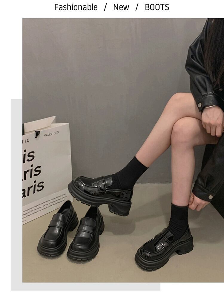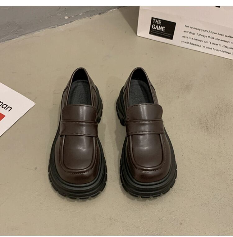Jia Bufake ローファーの女性の 2024 春の靴多用途小さな黒の厚底英国スタイルの小さな革靴 シューズ ブラック スプリング 春物 レザー jxjxf37546223383