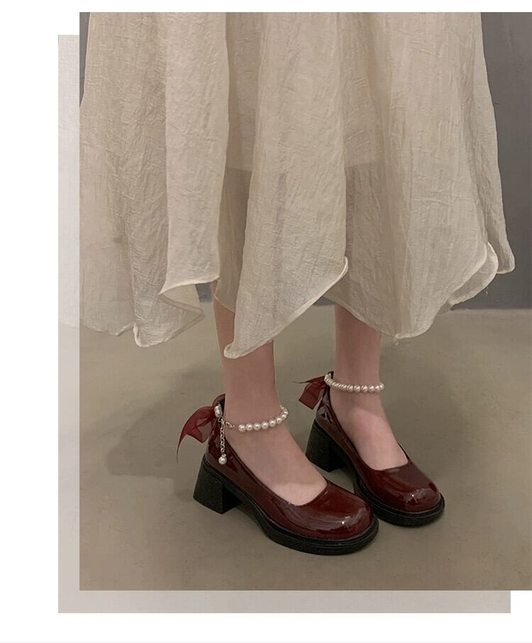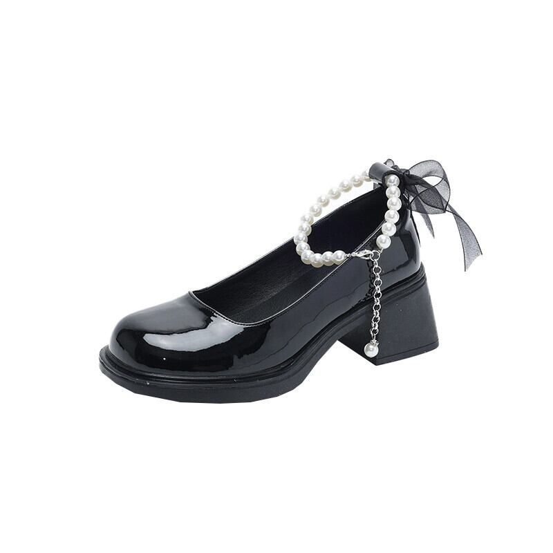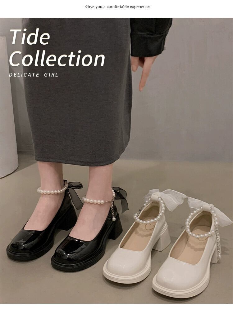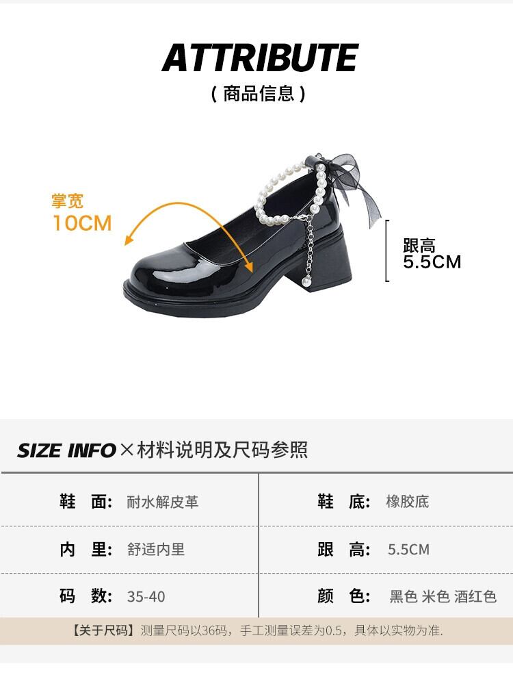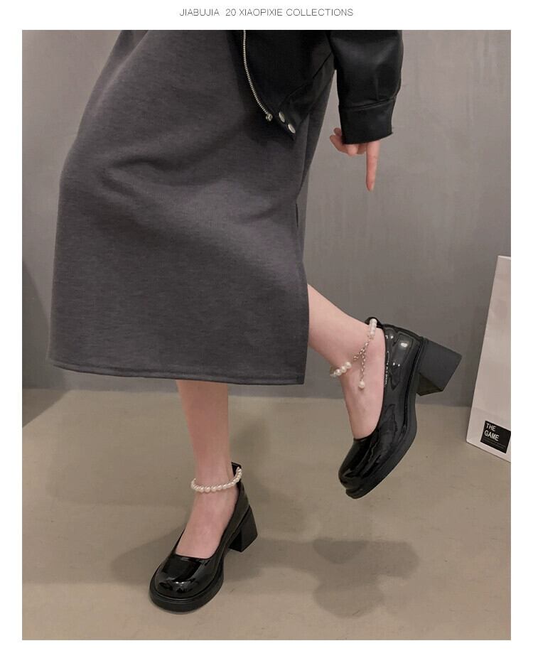 Jia Bufake メリージェーンの靴の女性 2024 春と秋の新レトロ多用途太いヒール浅い口のシングルシューズ厚底の小さな革の靴 スプリング 春物 オータム 秋物 レザー jxjxf2316583742