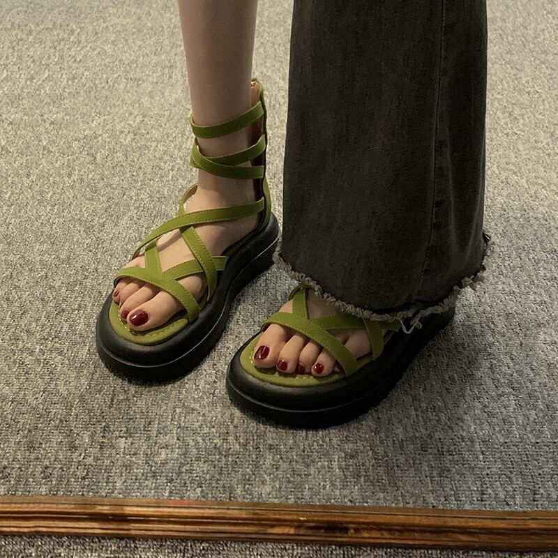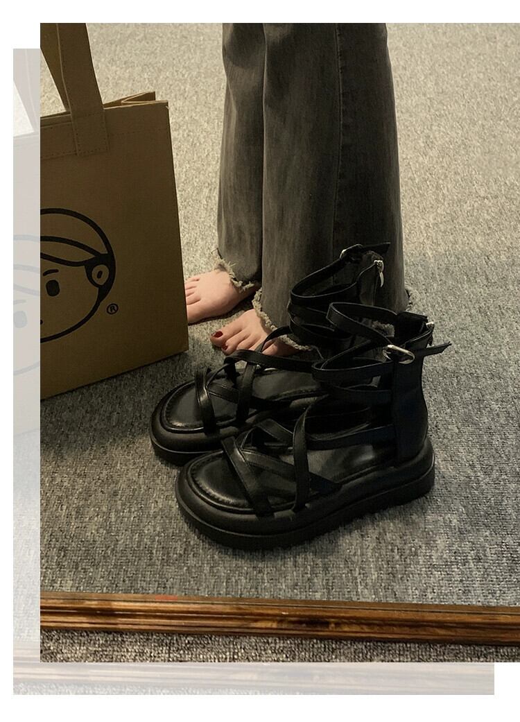 Jia Bujia インターネット有名人サンダル女性 2024 春の新超レトロ多用途小型厚底ビーチローマンシューズ 靴 スプリング 春物 jxjxf3899058597