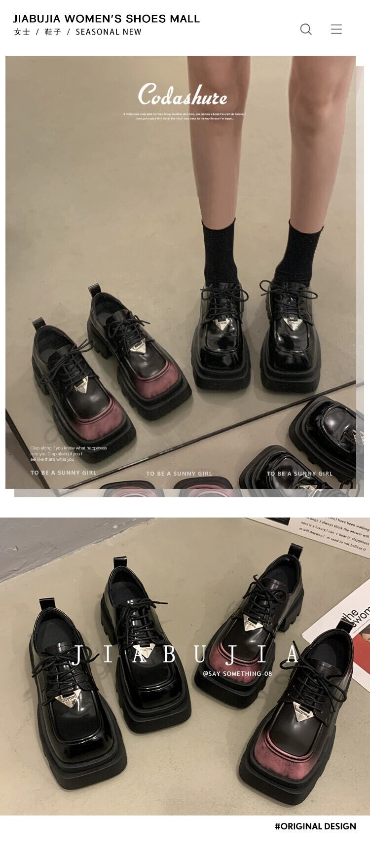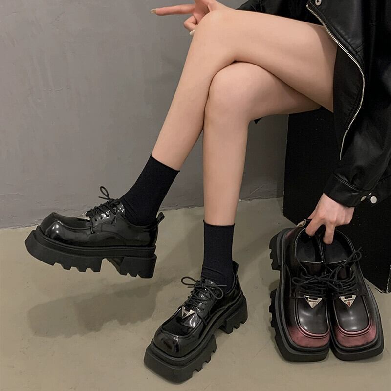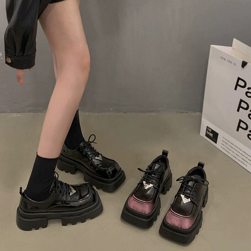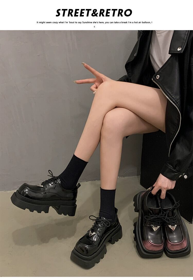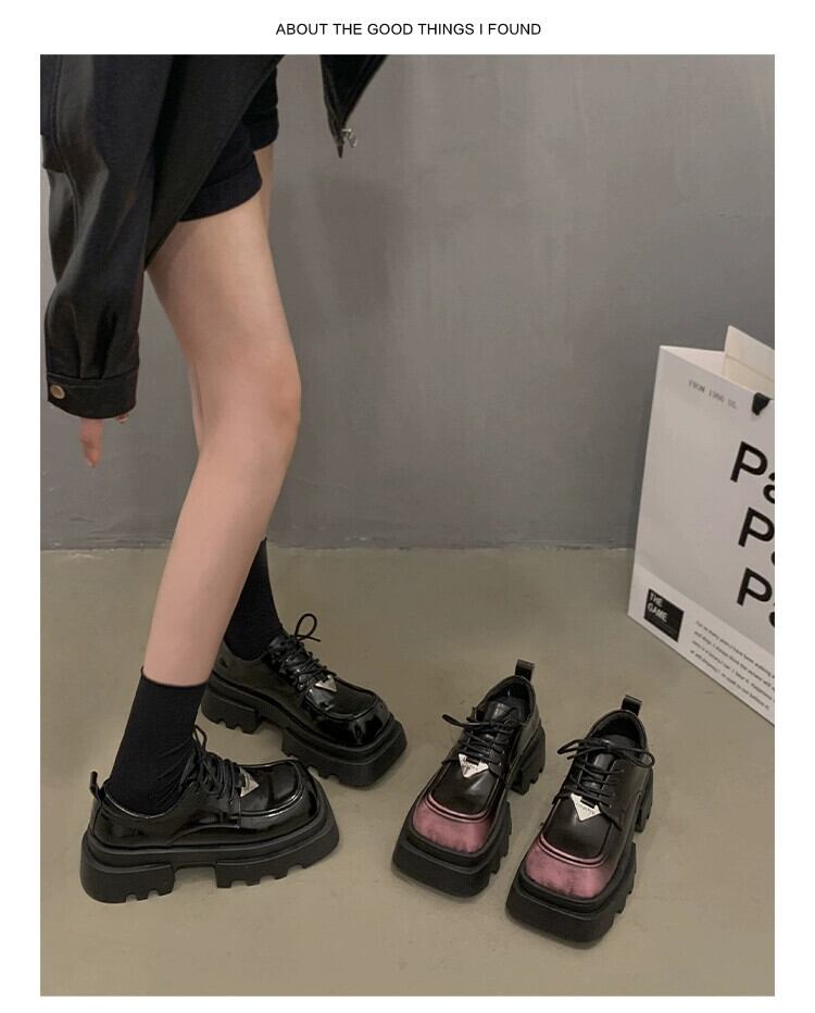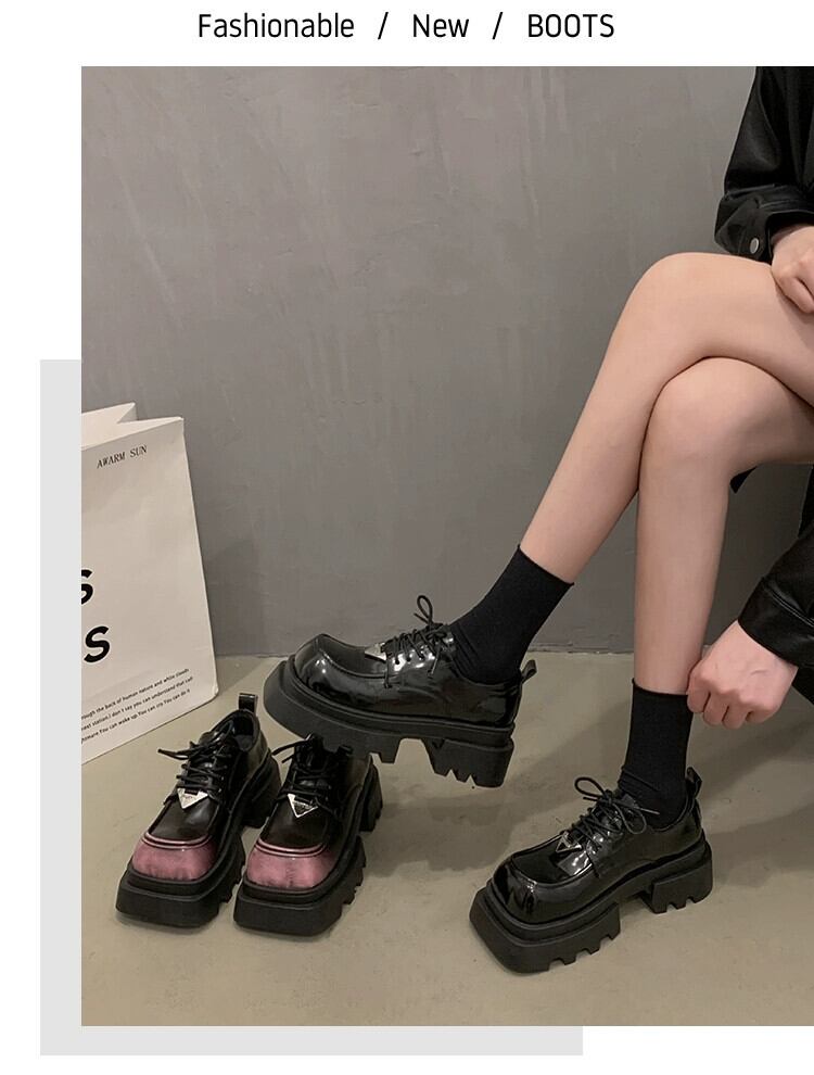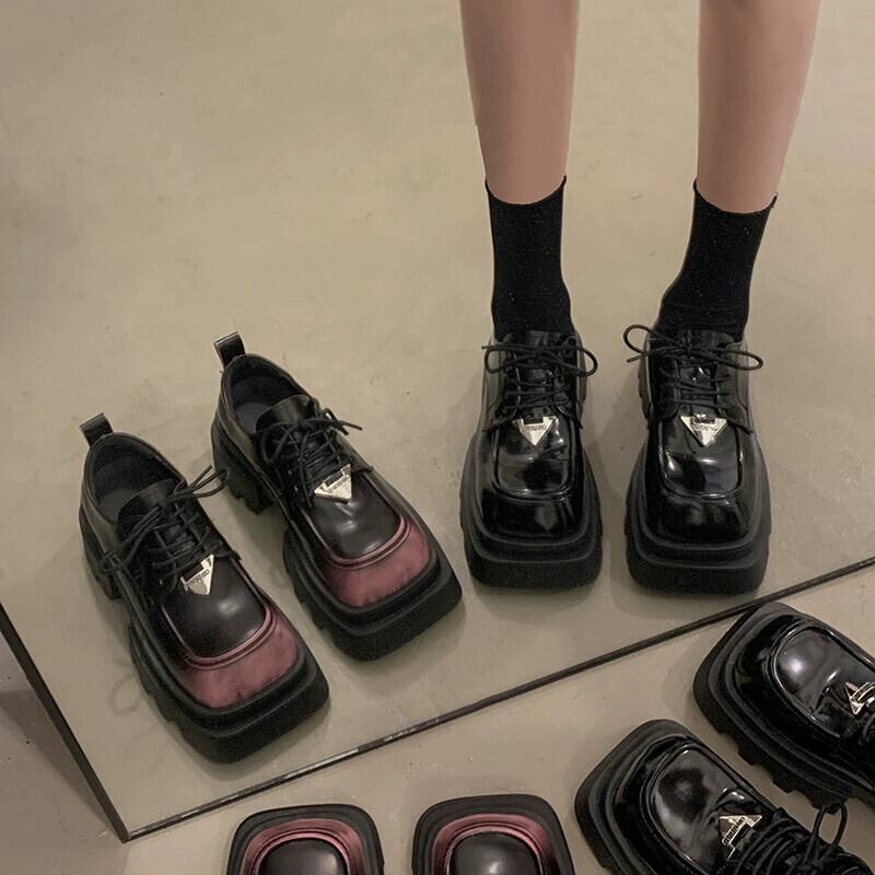 Jia Bujia スクエアトゥシングルシューズの女性 2024 春の新ファッションファッショナブルな小さな厚底レトロ甘くてクールな小さな革靴 大人ガーリー スウィート キュート カジュアル スプリング 春物 レザー スクウェア jxjxf87985712358