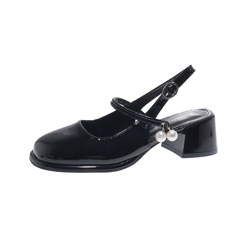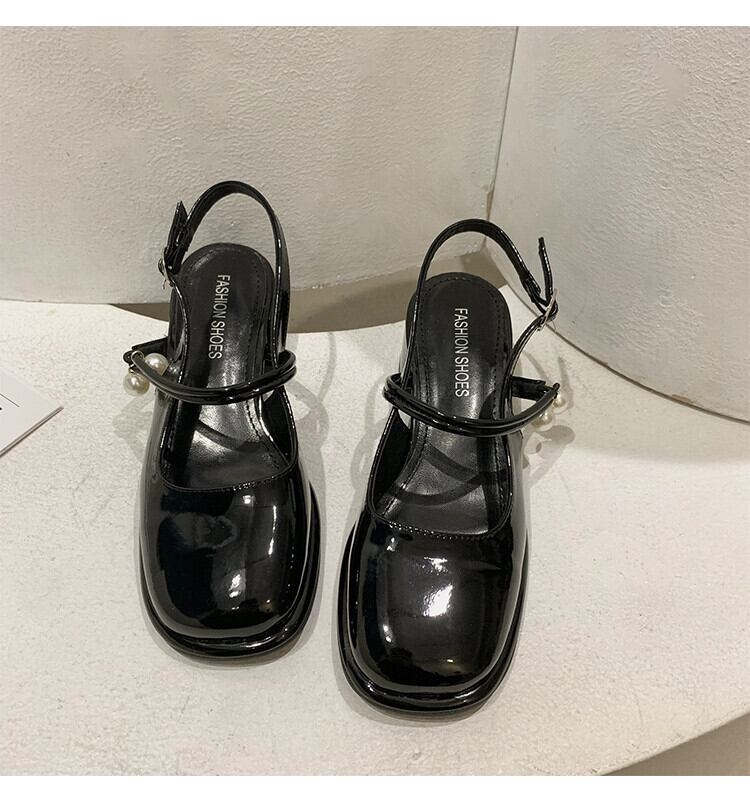 Jia Bujia Baotou サンダルの女性の 2024 春インターネット有名人パールフレンチジェントルマッチングスカート太いヒール小さな革靴 シューズ スプリング 春物 レザー 真珠 jxjxf96978497390