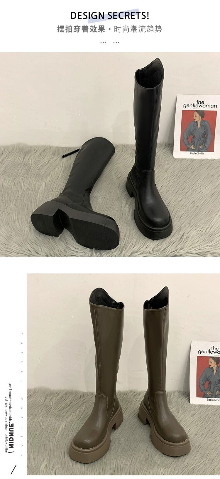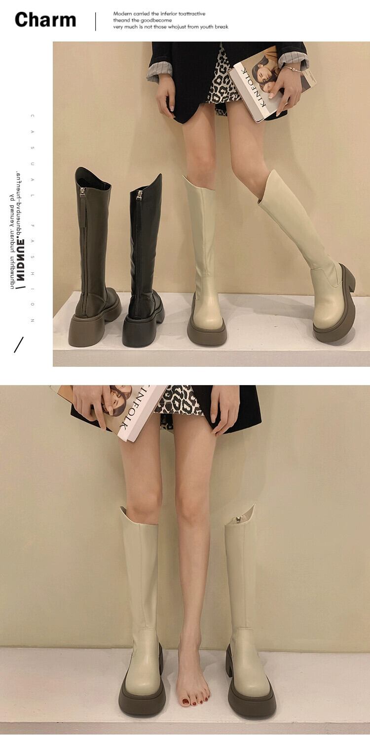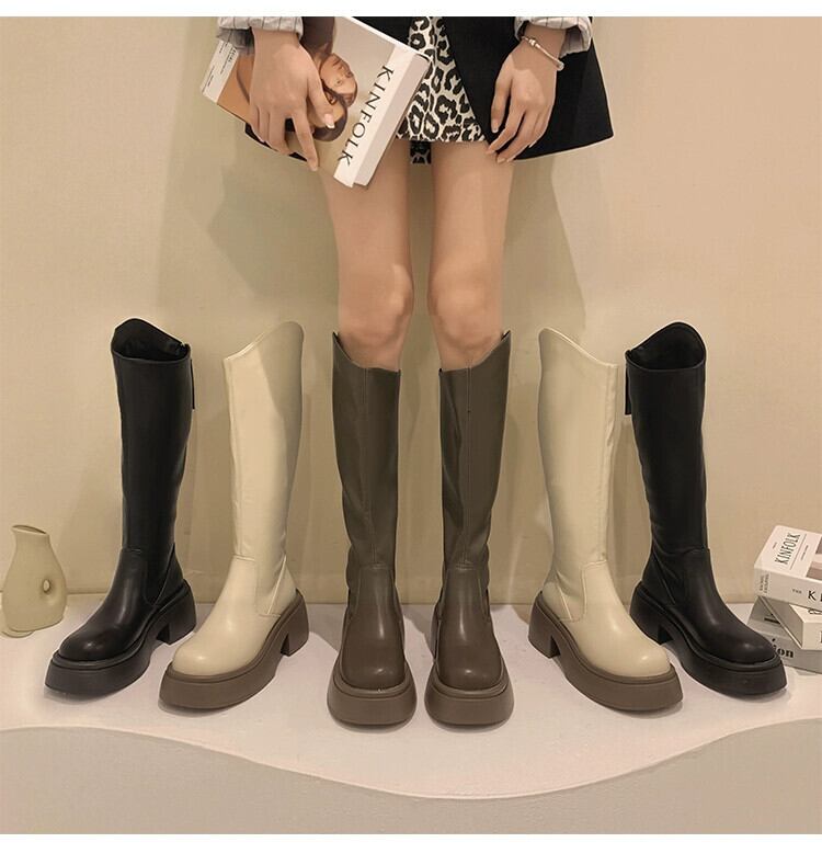 脚長レディースブーツ 2024 春の新作ファッション人気の多用途プラスベルベット暖かい太いヒール滑り止めファッション性を高めるブーツ ロング 靴 シューズ スプリング 春物 jxjxf82281969732