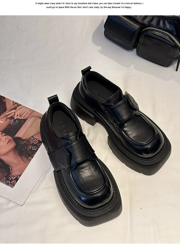 Jia Bujia 英国スタイルの小さな革靴の女性 2024 春の新スタイルのシングルシューズ多用途の小さな黒の厚底ローファー ブラック スプリング 春物 レザー jxjxf34015443304