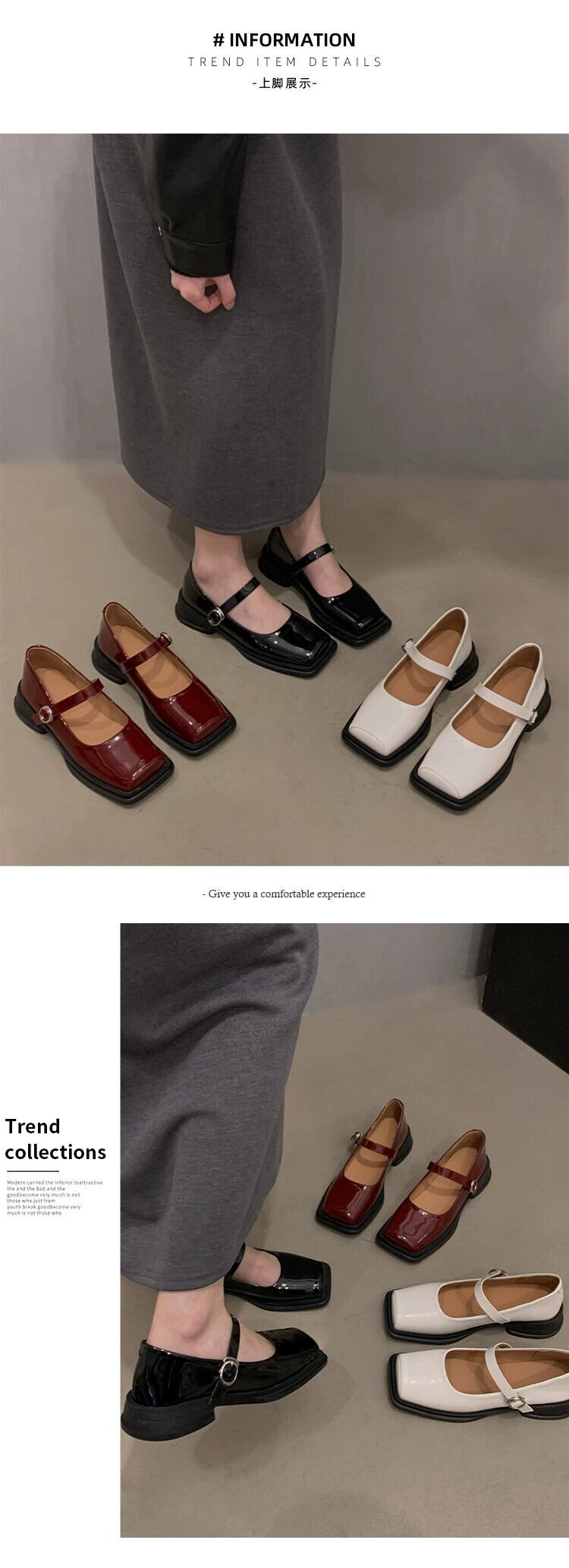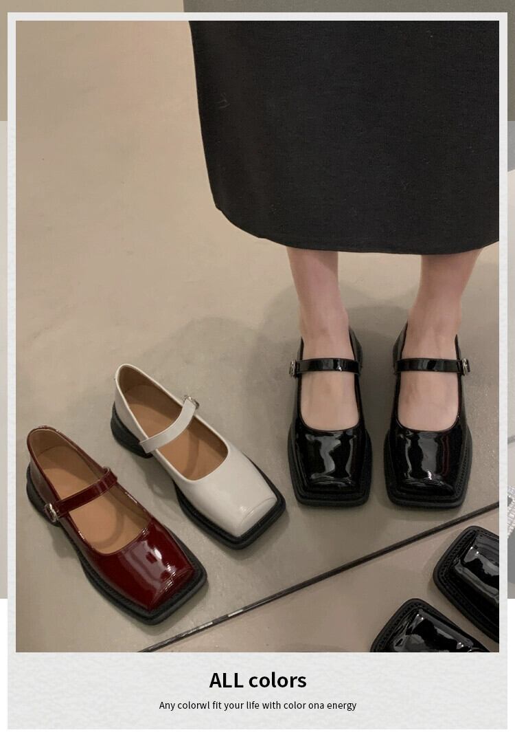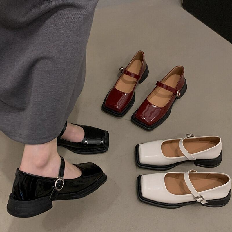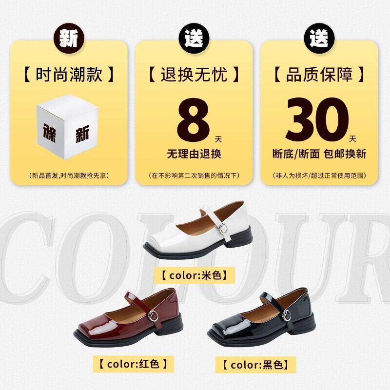 Jia Bujia スタイルの婦人靴 2024 春と秋の新スタイルのフレンチスタイルのファッショナブルなスクエアトゥの小さな革靴とスカート シューズ スプリング 春物 オータム 秋物 レザー スクウェア jxjxf84780316553