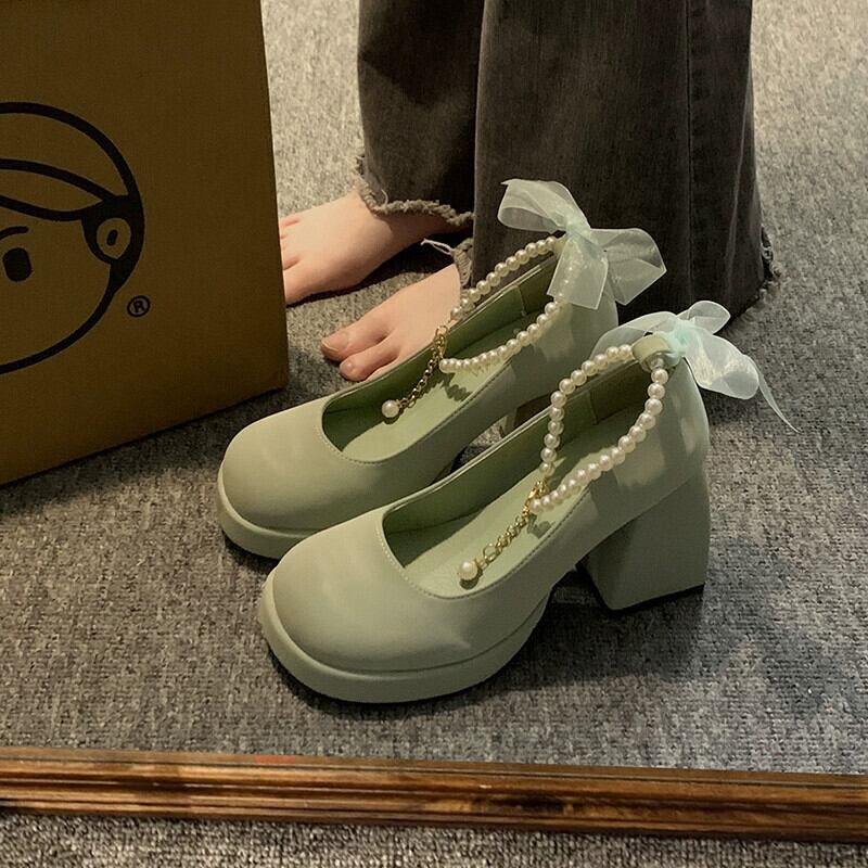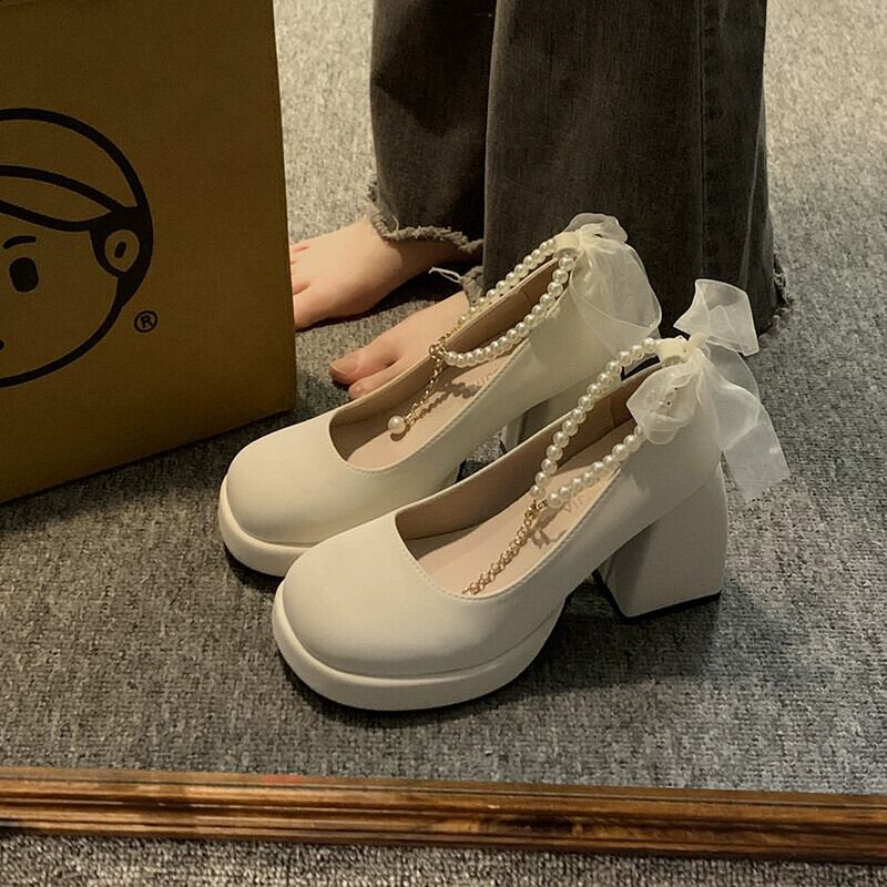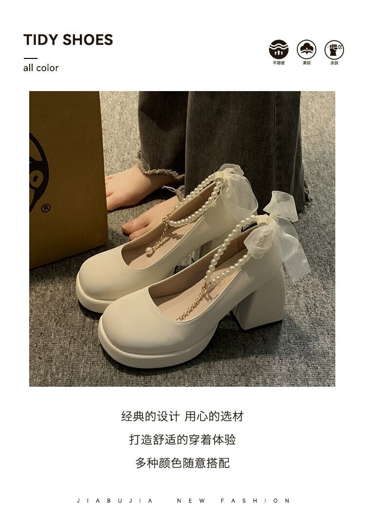 Jia Bufake ヒールの女性の 2024 春スタイルフランスの気質シングルシューズパールスモールフレグランススタイル太いヒールメリージェーンの靴 スプリング 春物 真珠 jxjxf87127817042