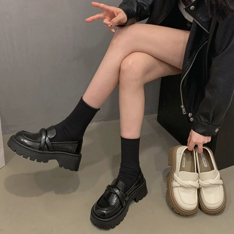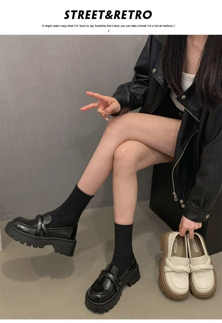 Jia Bufake 小さな革靴の女性 2024 春の新スタイルのシングルシューズレトロシンプルな気質フランス万能厚底ローファー スプリング 春物 レザー jxjxf91424335290