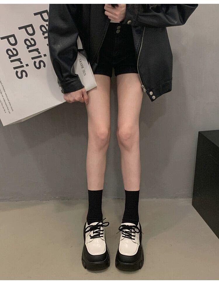 Jiabu ホリデーシューズ レディース 2024 春と秋の多用途英国スタイル高められた厚底の小さな革靴 スプリング 春物 オータム 秋物 レザー jxjxf32988678689