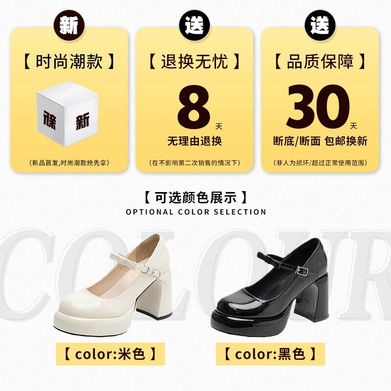 Jia Bufake メリージェーン靴の女性の 2024 春の新作靴英国スタイルの多用途の小さなハイヒールの靴 シューズ スプリング 春物 jxjxf24282476857
