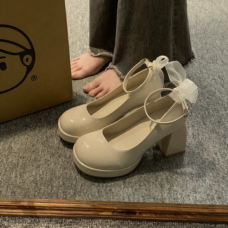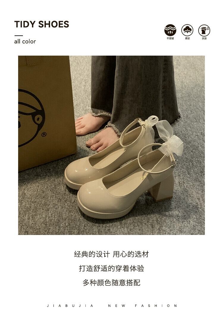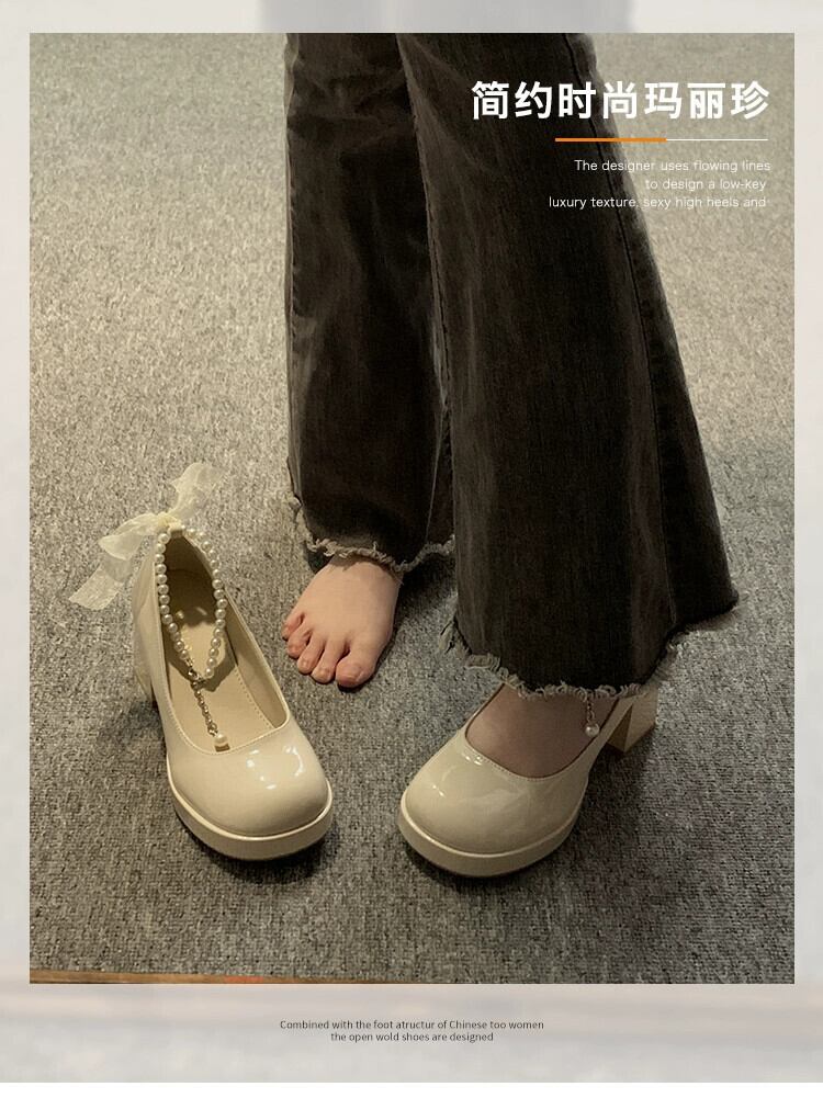 Jia Bufake 小さな革の靴の女性 2024 春の新靴気質真珠の優しいフランスのハイヒールのメリージェーンの靴 シューズ スプリング 春物 レザー パール jxjxf55458611312