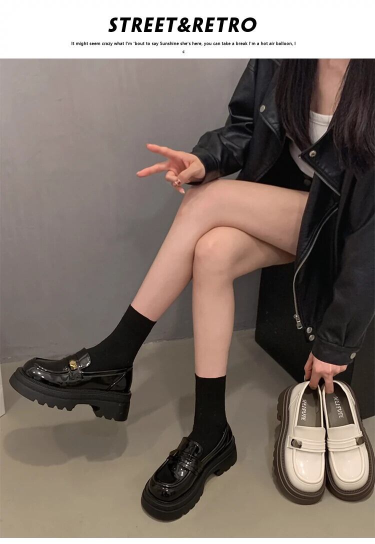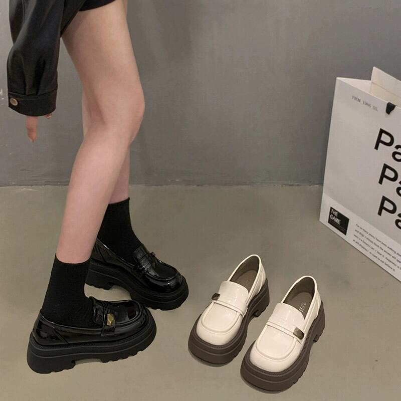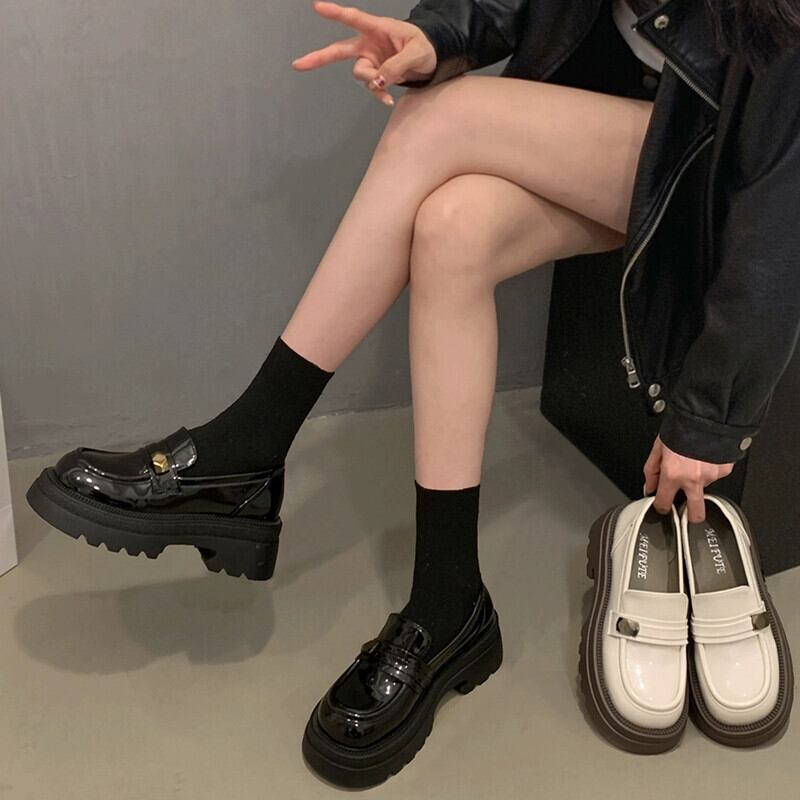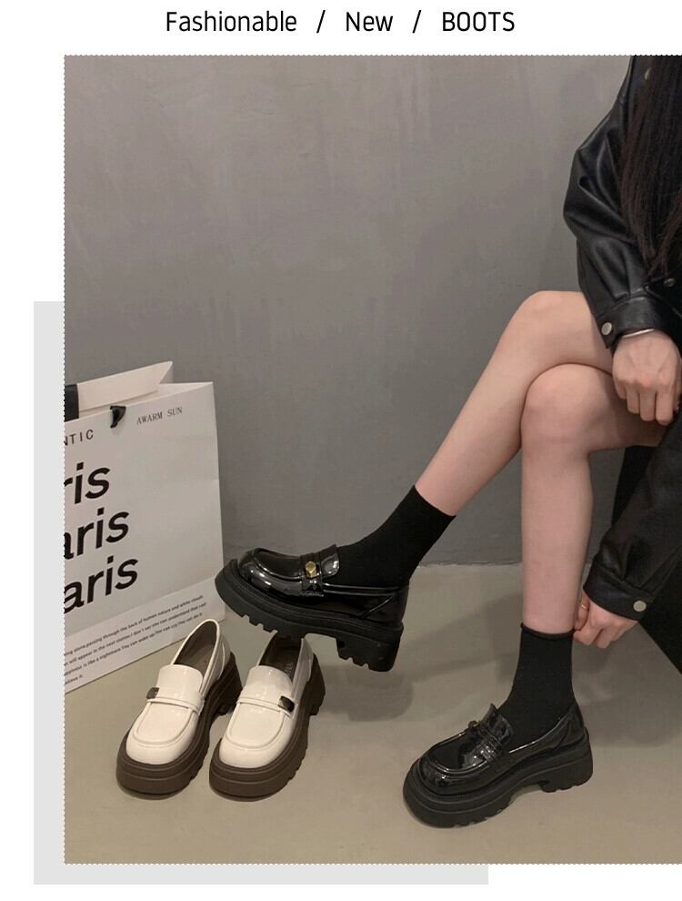 Jia Bufake ローファーの女性の 2024 春の靴多用途小さな黒の厚底英国スタイルの小さな革靴 シューズ ブラック スプリング 春物 レザー jxjxf56901878895