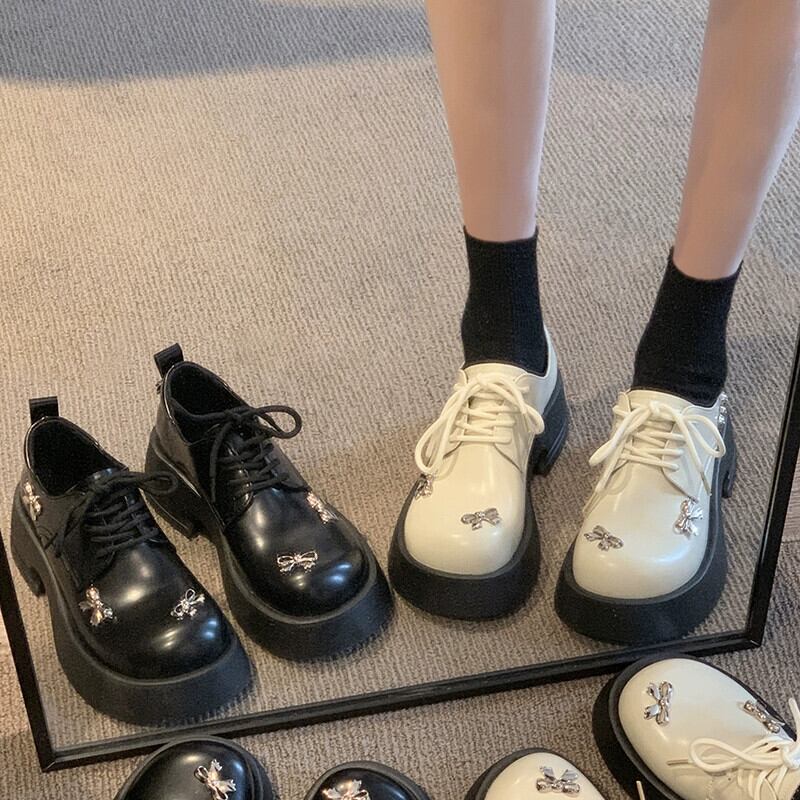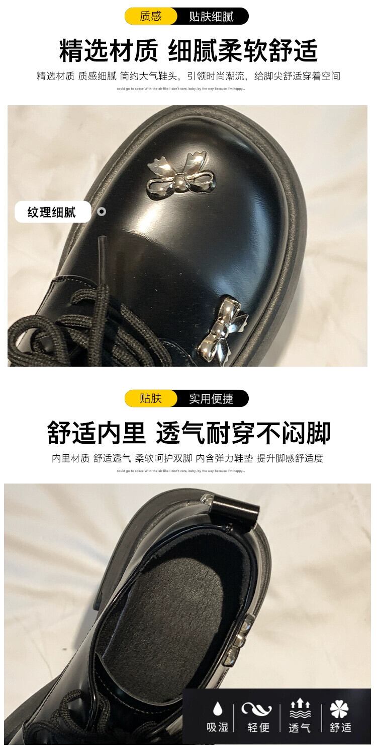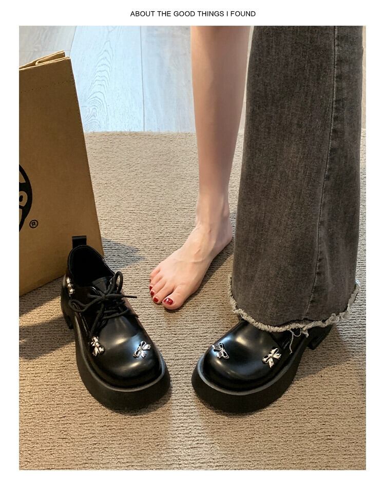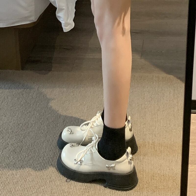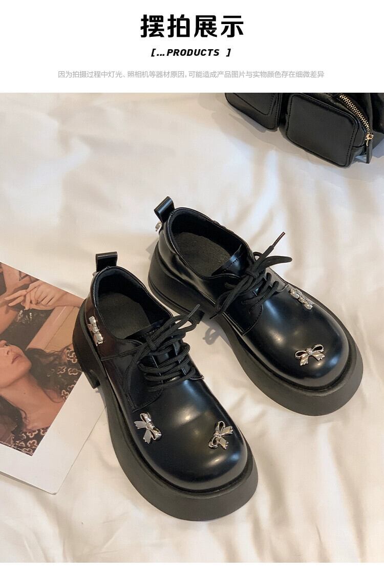 Jia Bujia インターネット有名人のシングルシューズの女性 2024 春の新多用途レトロな甘い弓厚底の小さな革靴 リボン 大人ガーリー スウィート キュート カジュアル スプリング 春物 レザー jxjxf98158343448