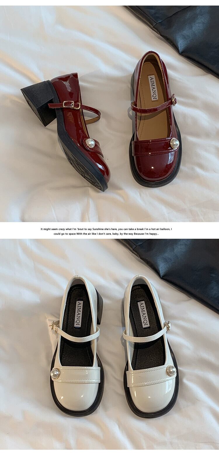 Jia Bufake メリージェーンの靴の女性の 2024 春の新しい気質パールフレンチレトロな小さなハイヒールの靴 シューズ スプリング 春物 真珠 jxjxf78457415471
