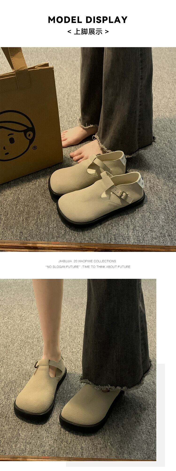 Jia Bufake ビルケンシュトック靴女性 2024 春と秋の新しいカジュアルシューズ厚底レトロ多用途ソフトソールスクエアヘッドビーニーシューズ スプリング 春物 オータム 秋物 スクウェア jxjxf79243489198
