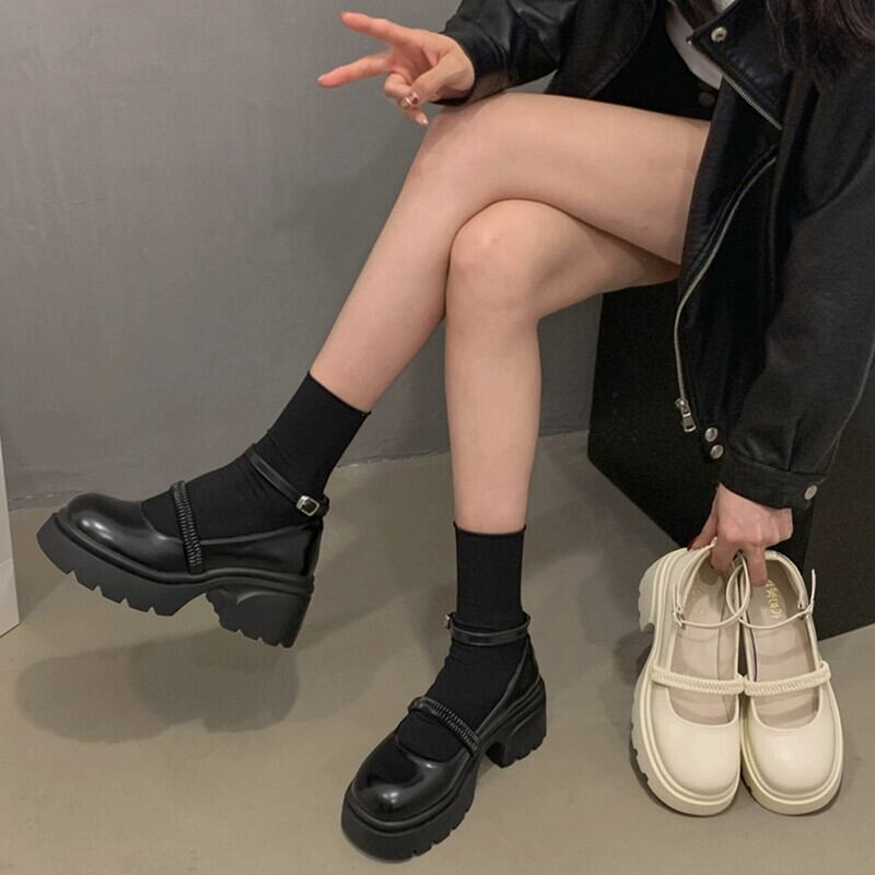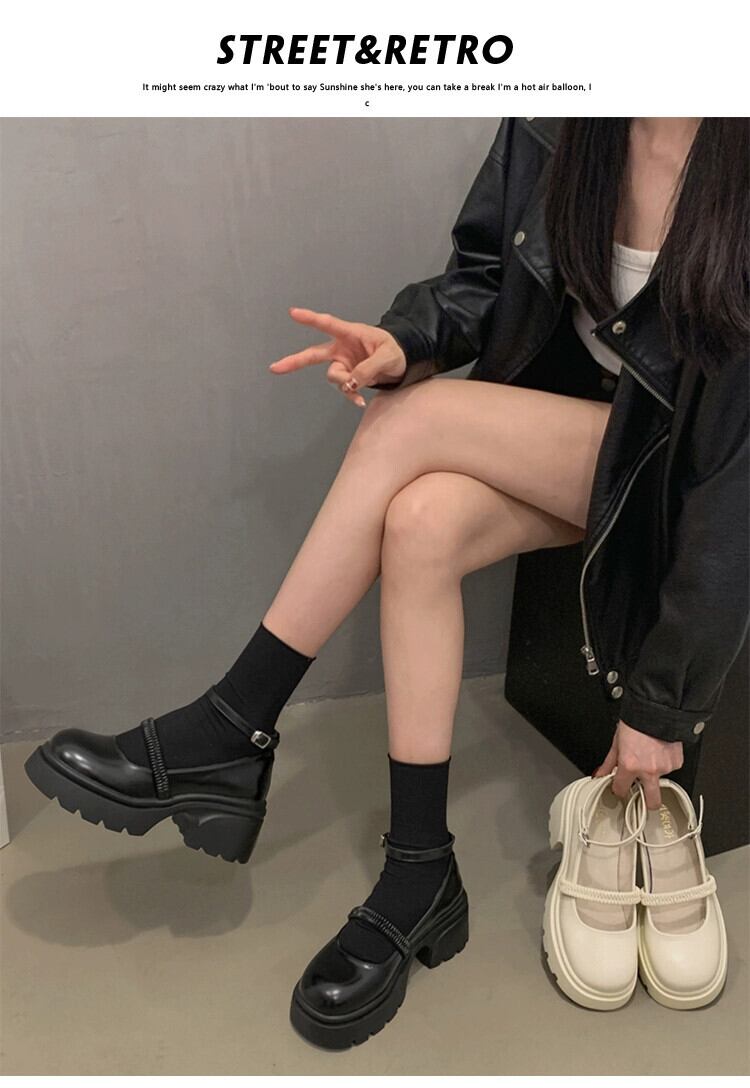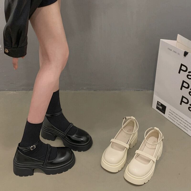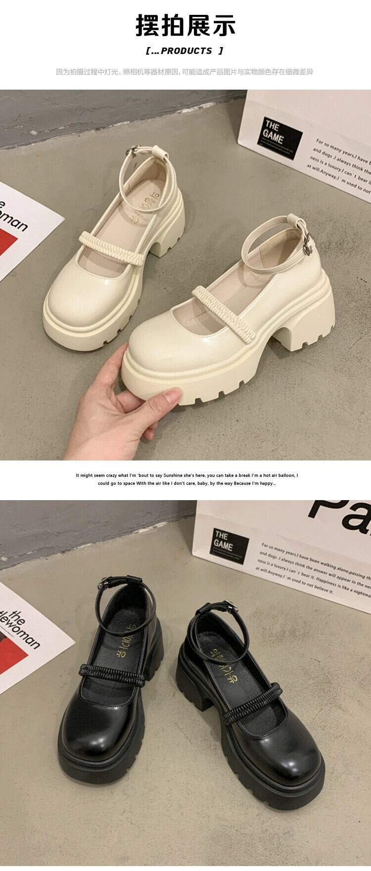 Jia Bufake メリージェーンの靴の女性 2024 春の新スタイルのインターネット有名人フランスのシンプルな気質太いヒールの小さな靴 シューズ スプリング 春物 jxjxf59616235410