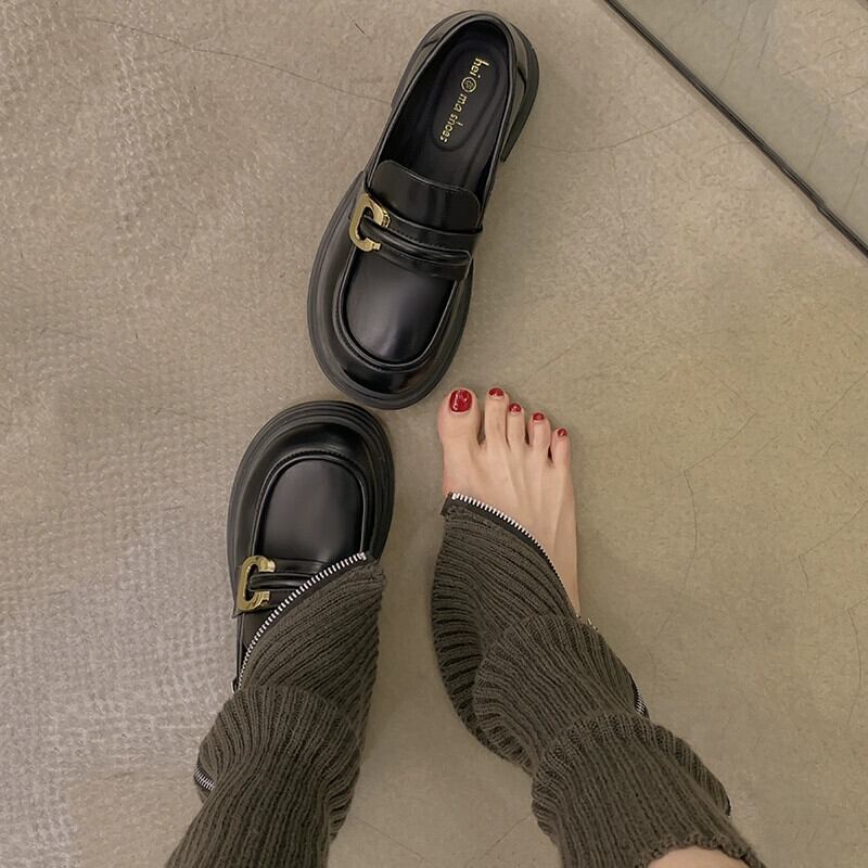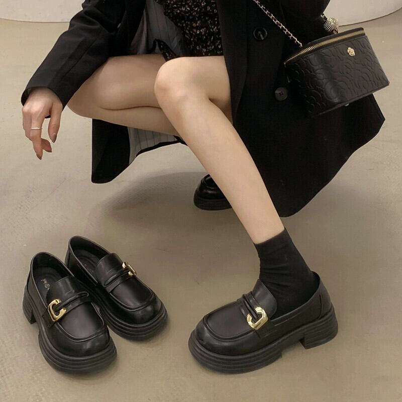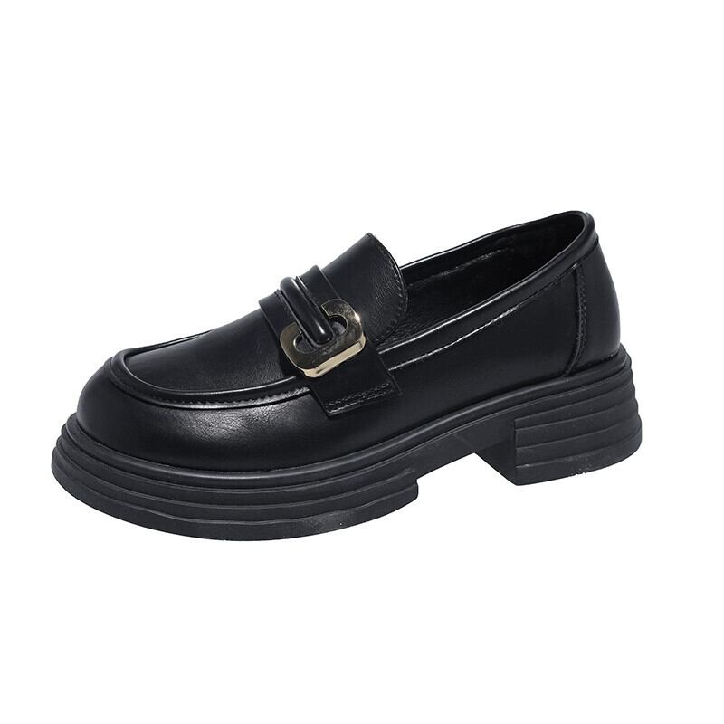 小さな革靴の女性 2023 冬の新ファッション多用途通勤シンプルな太いヒール滑り止め eign スタイル厚底ローファー シューズ ウィンター 冬物 レザー jxjxf87739453329