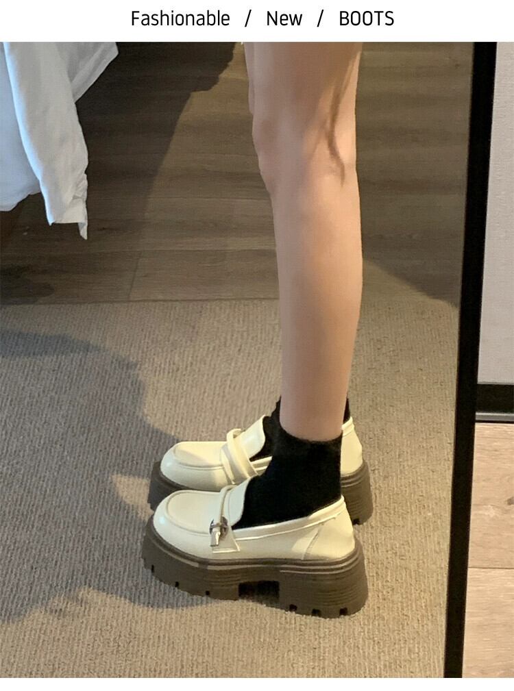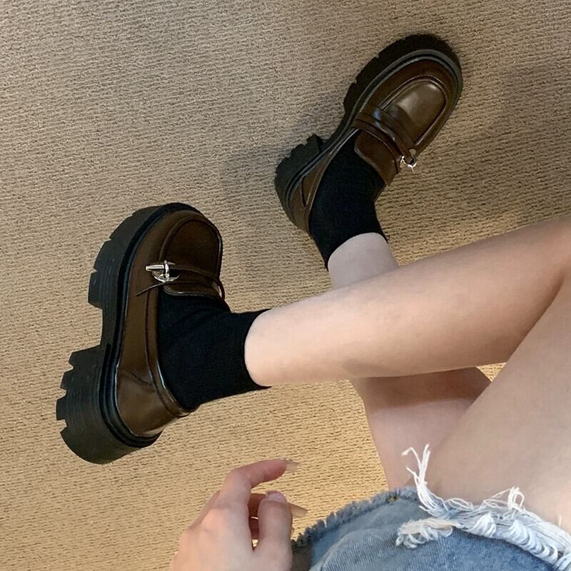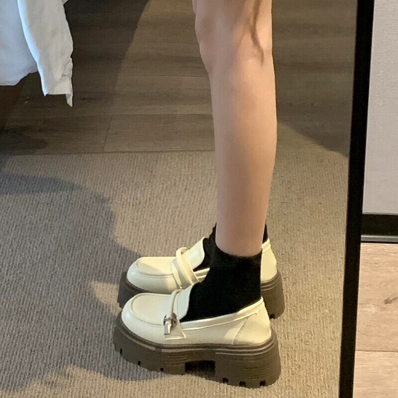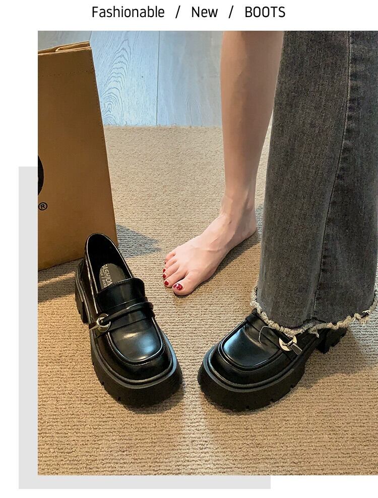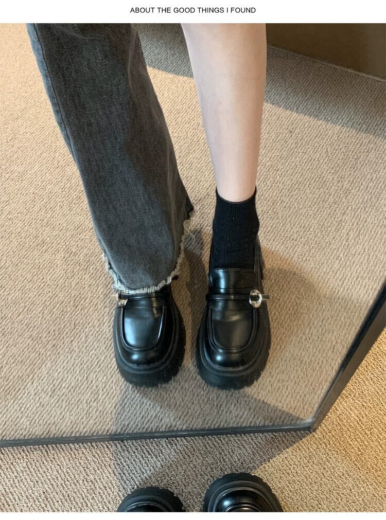 Jia Bufake ローファー女性の 2024 春シングルシューズ多用途小型厚底レトロ英国スタイルの小さな革靴 スプリング 春物 レザー jxjxf88066929910