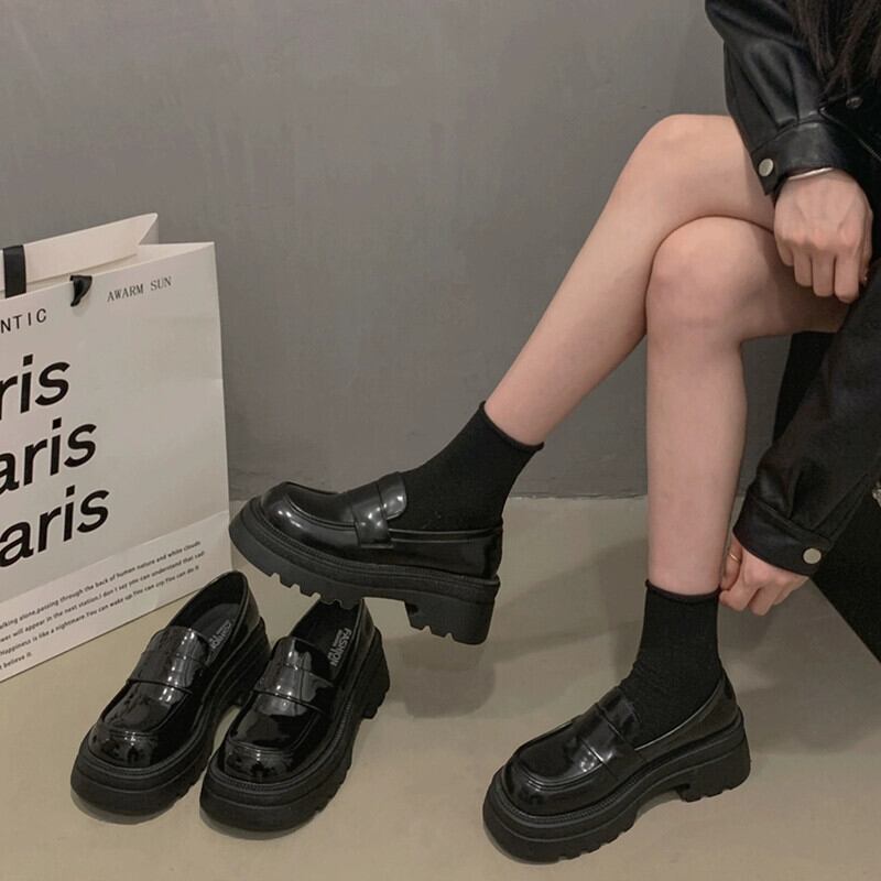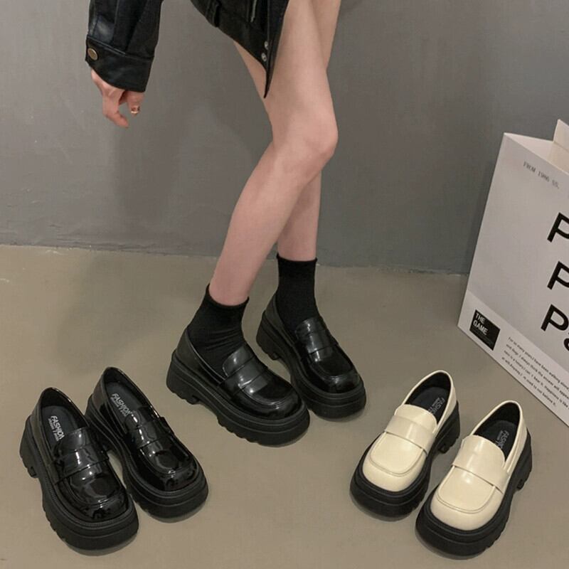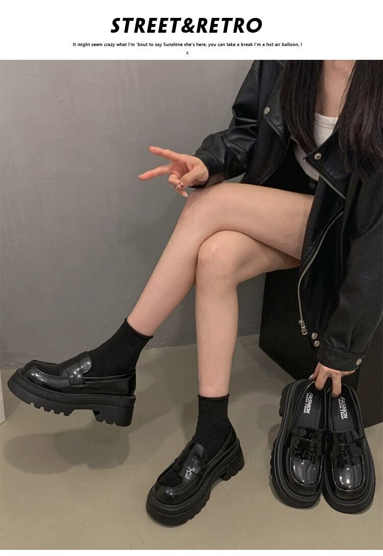 Jia Bufake 小さな革靴の女性 2024 春の新しい気質多彩な厚底英国スタイルのスリッポンローファー シューズ スプリング 春物 レザー jxjxf43531976204