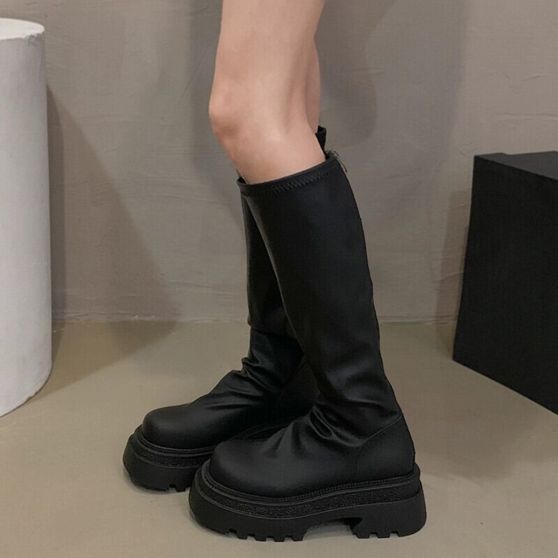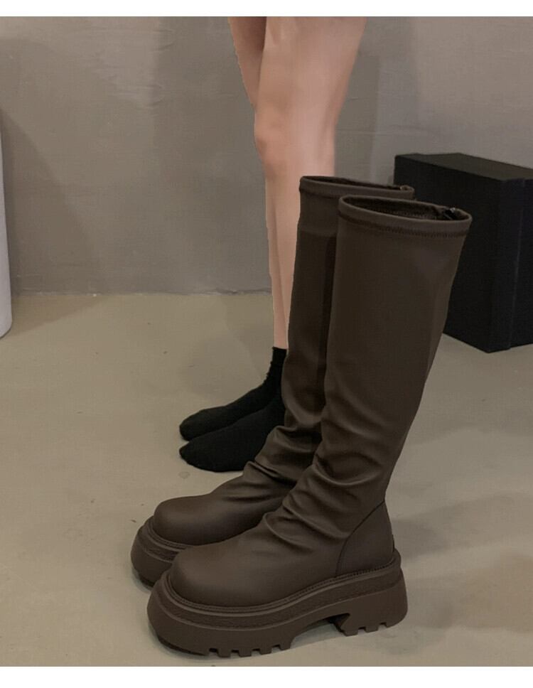 Jia Bufake ブーツの女性 2024 春の新スタイルのファッショナブルで多用途な小さな厚い底のハンサムな非落下スリムブーツ 靴 シューズ スプリング 春物 jxjxf52903471541