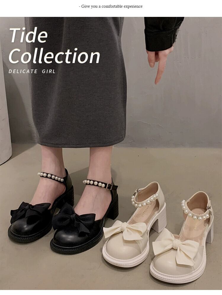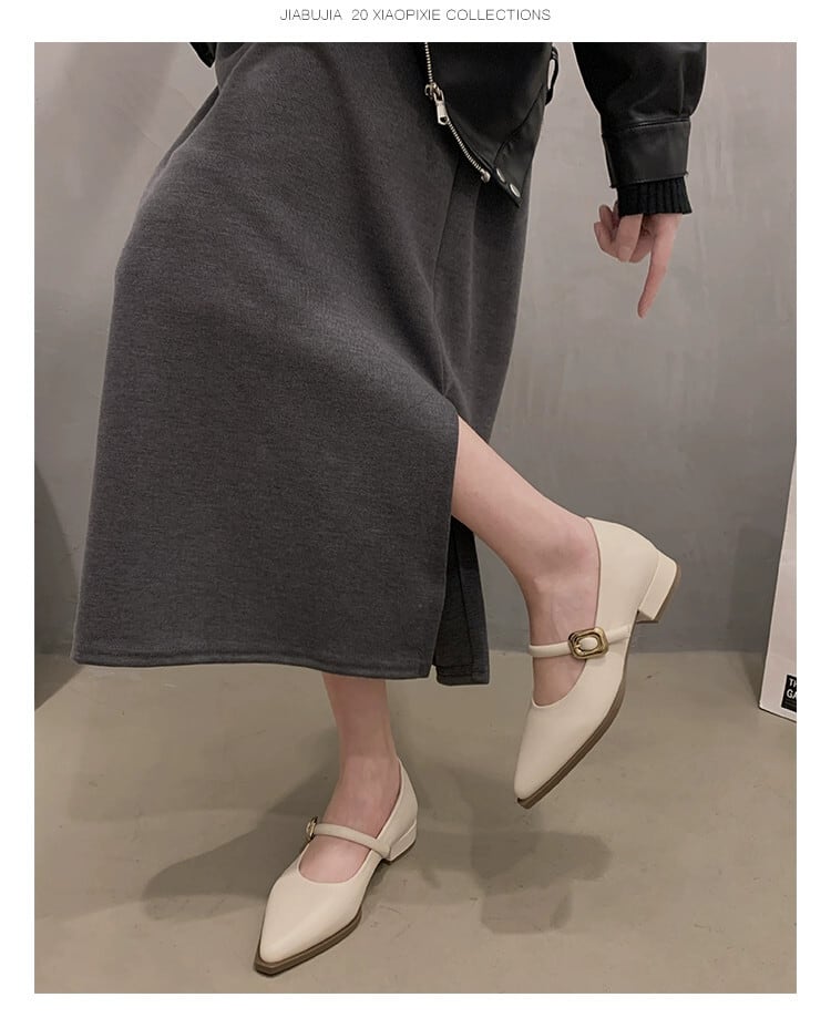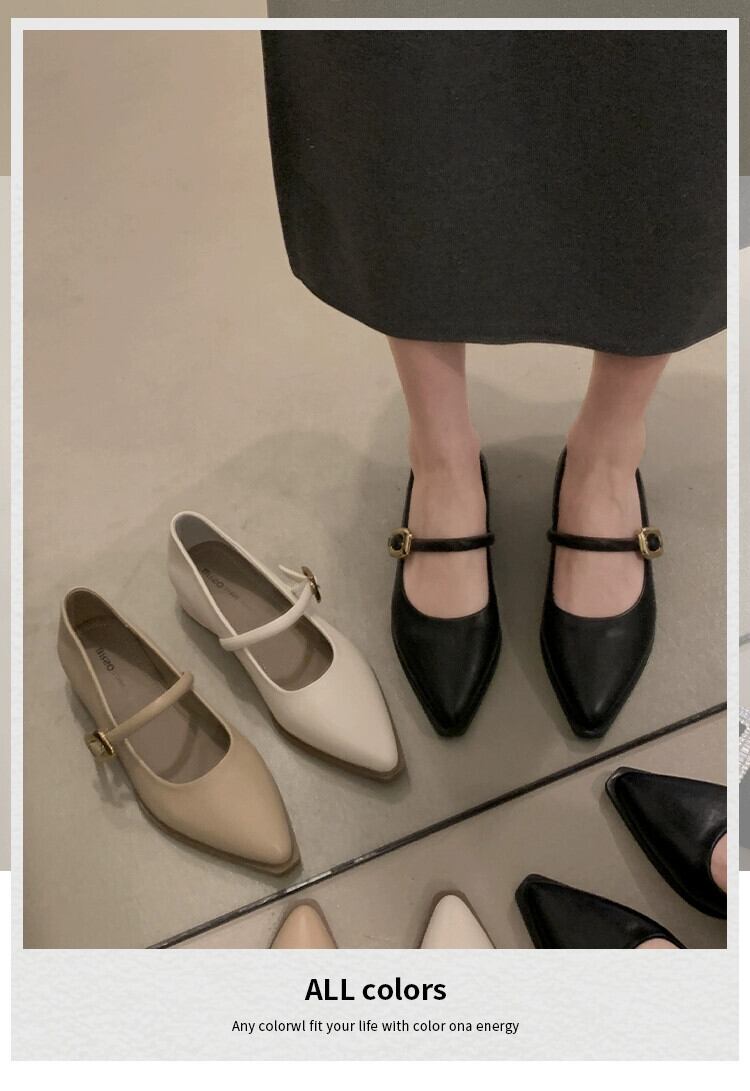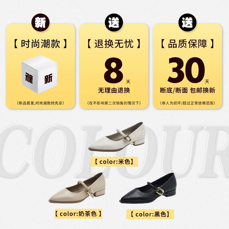 Jia Bujia 婦人靴 2024 春の新スタイルフランスの優しい通勤気質ファッショナブルな太いヒールポインテッドトゥ小さな革靴 シューズ スプリング 春物 レザー jxjxf37958171696